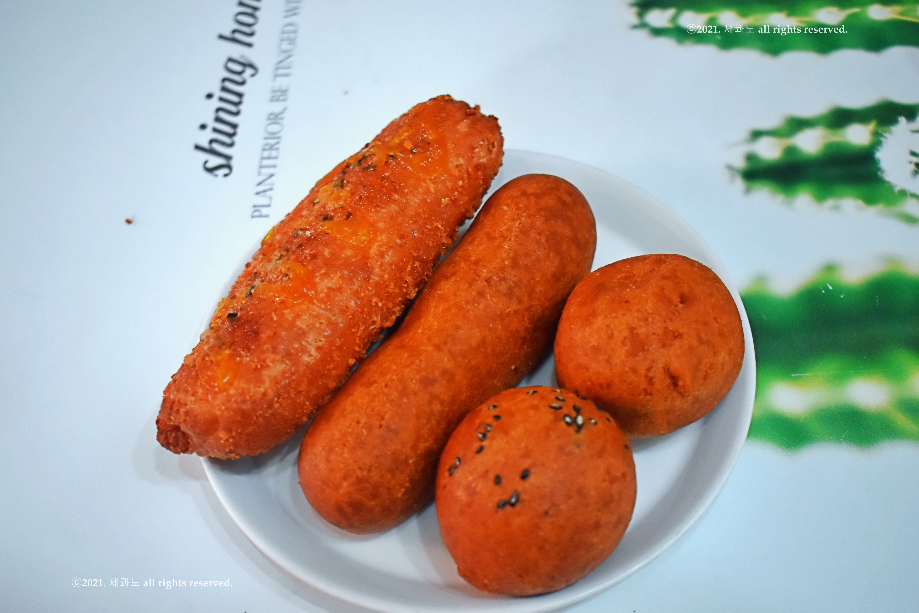소세지 도너츠, 마늘 소세지, 야채고로케도 1000원