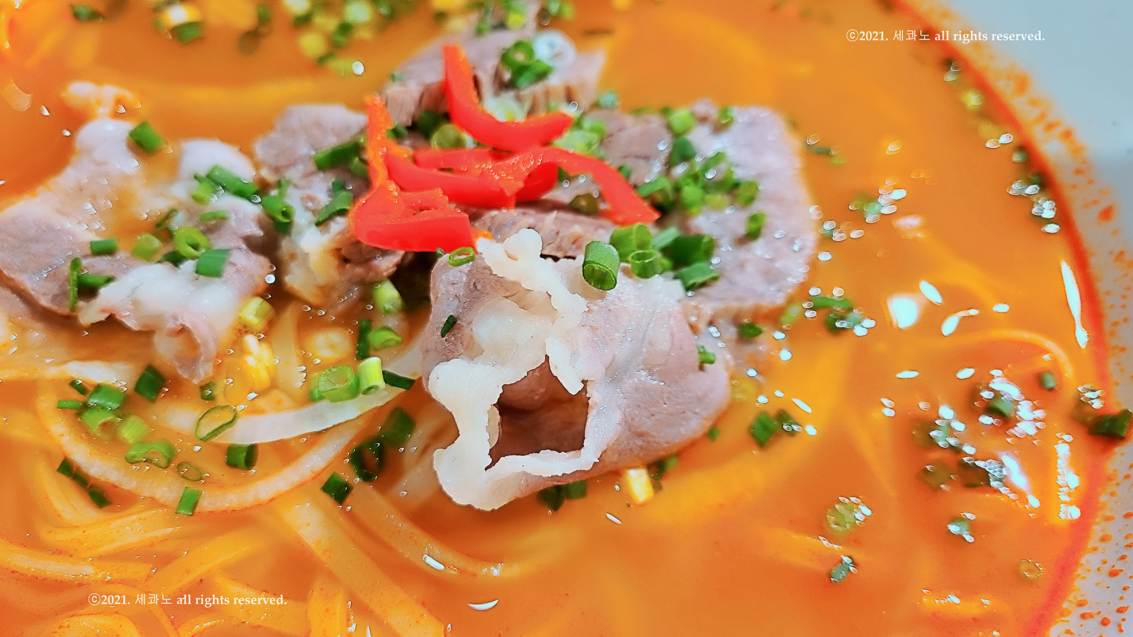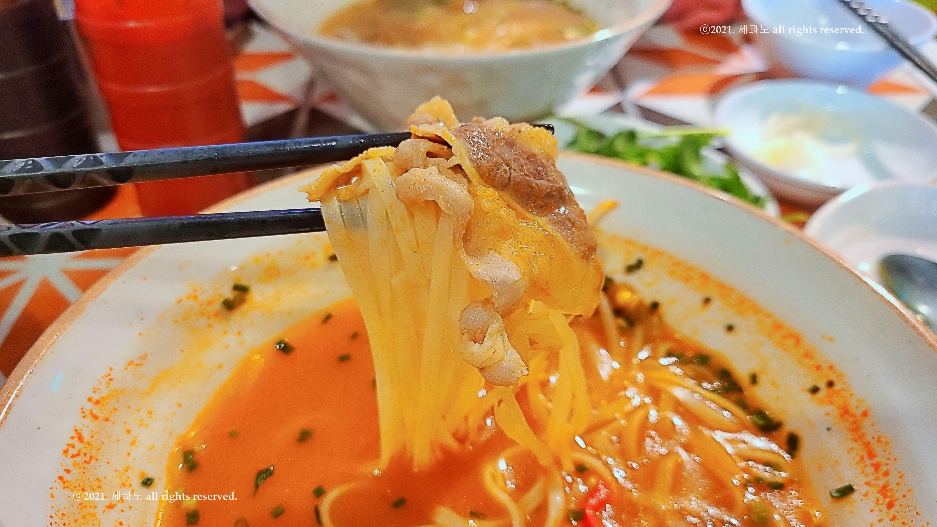 우삼겹과 양지가 같이 나오는 매운 쌀국수를 주문하였다.