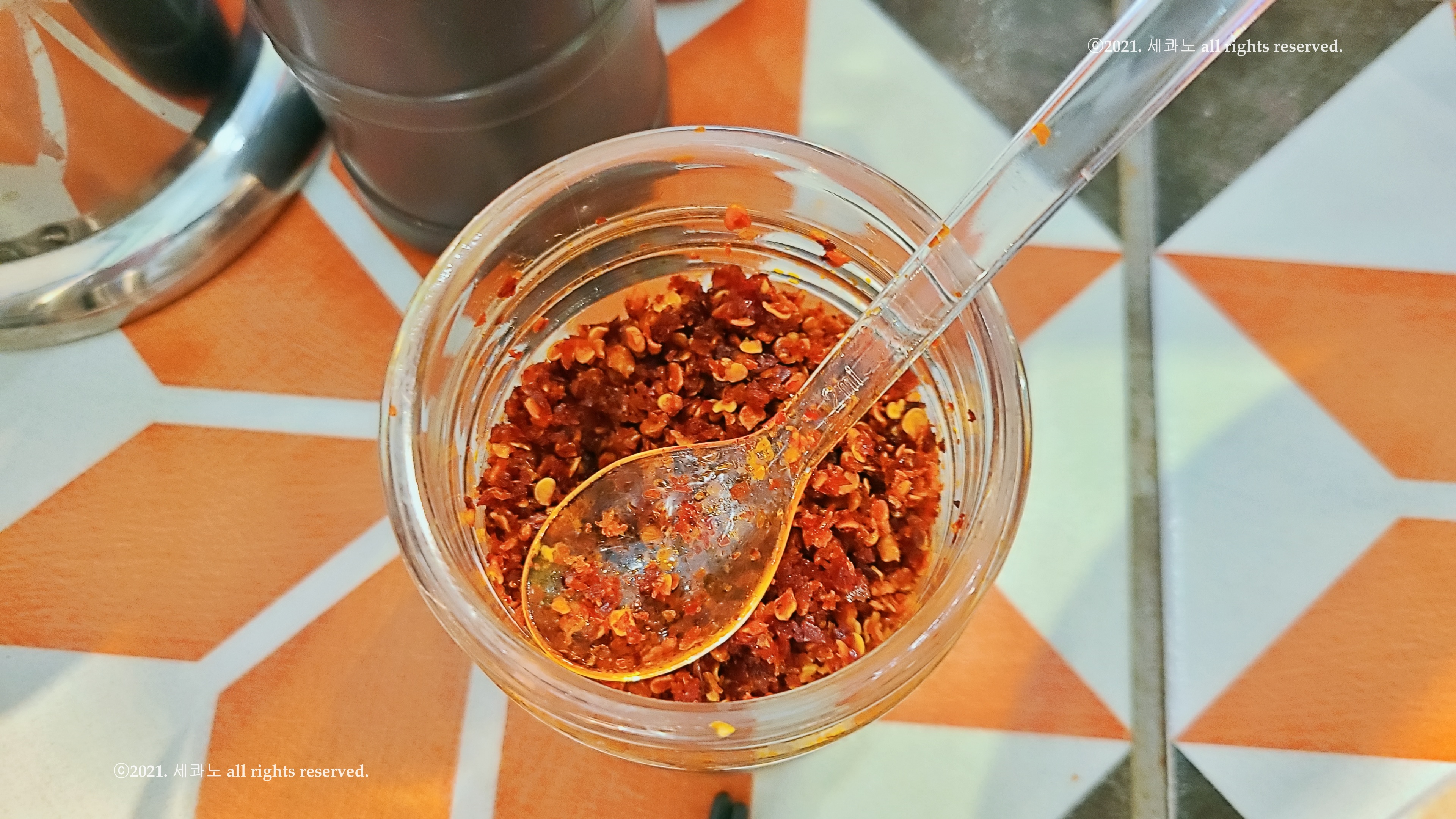 알고 보니 고추기름을 만든 다음 그 기름을 쫙 빼낸 느낌