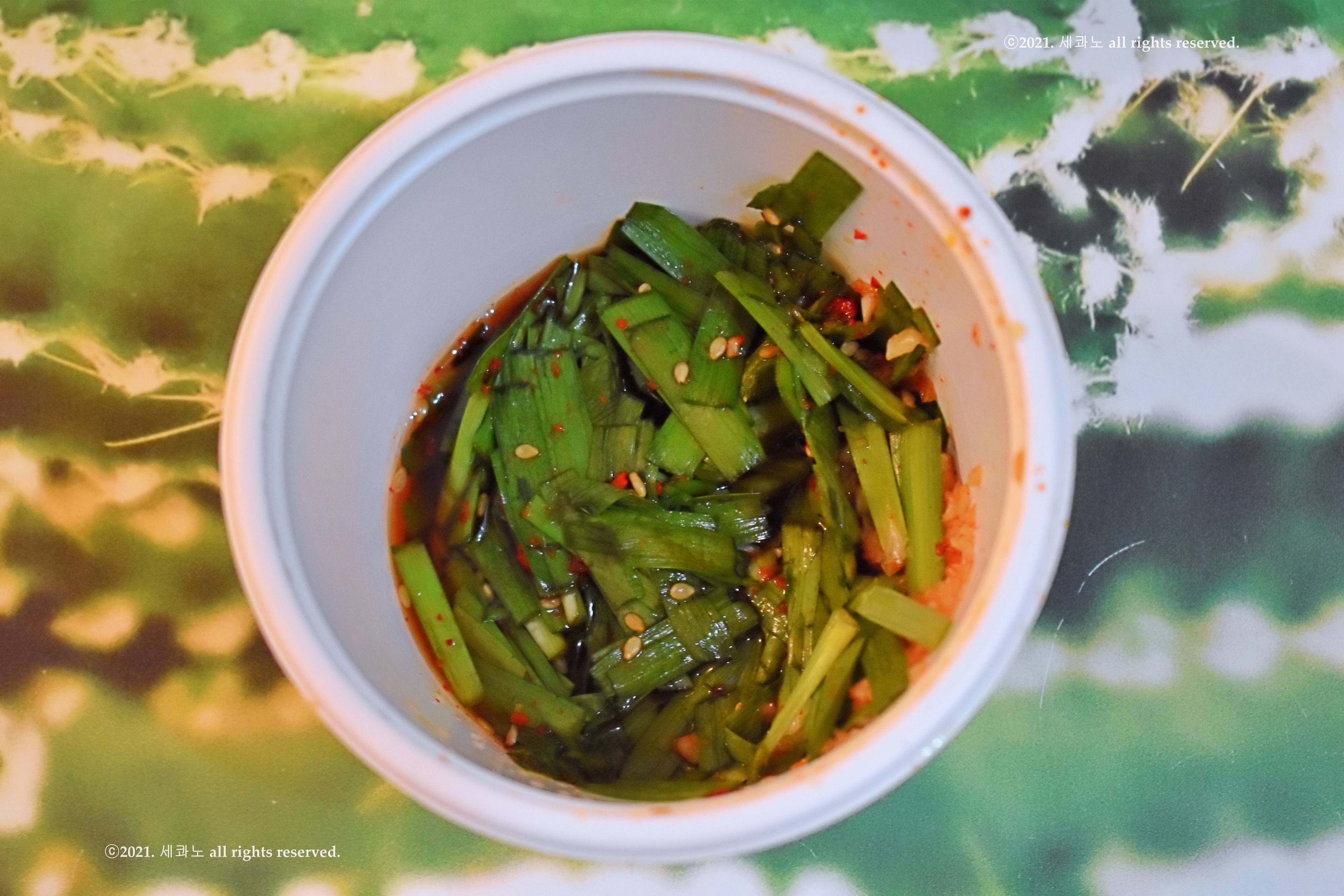 꼬리를 찍어 먹을 부추 + 양념간장 + 간마늘