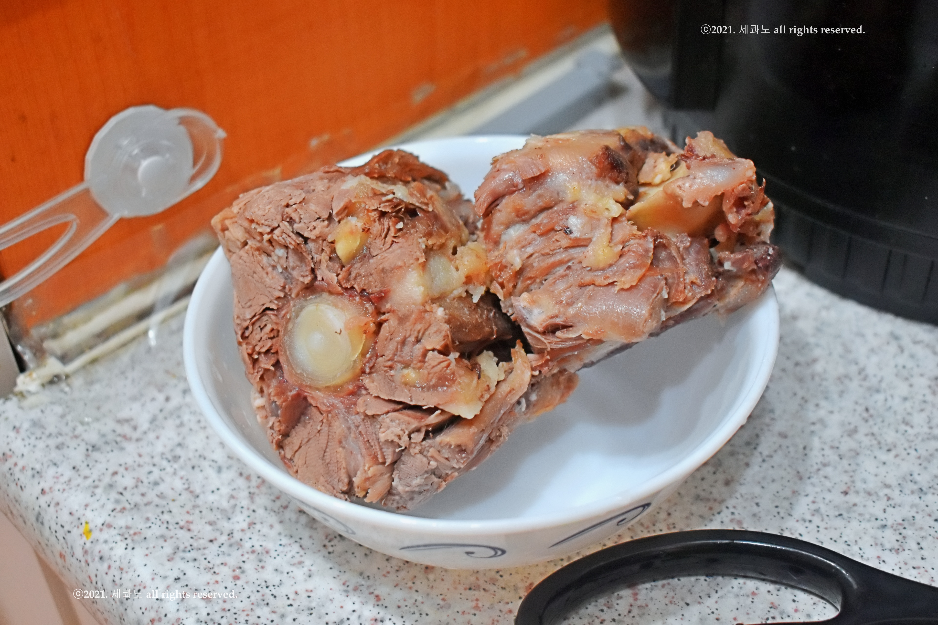 미리 꺼내 둔 소꼬리를 안에 넣어준다.