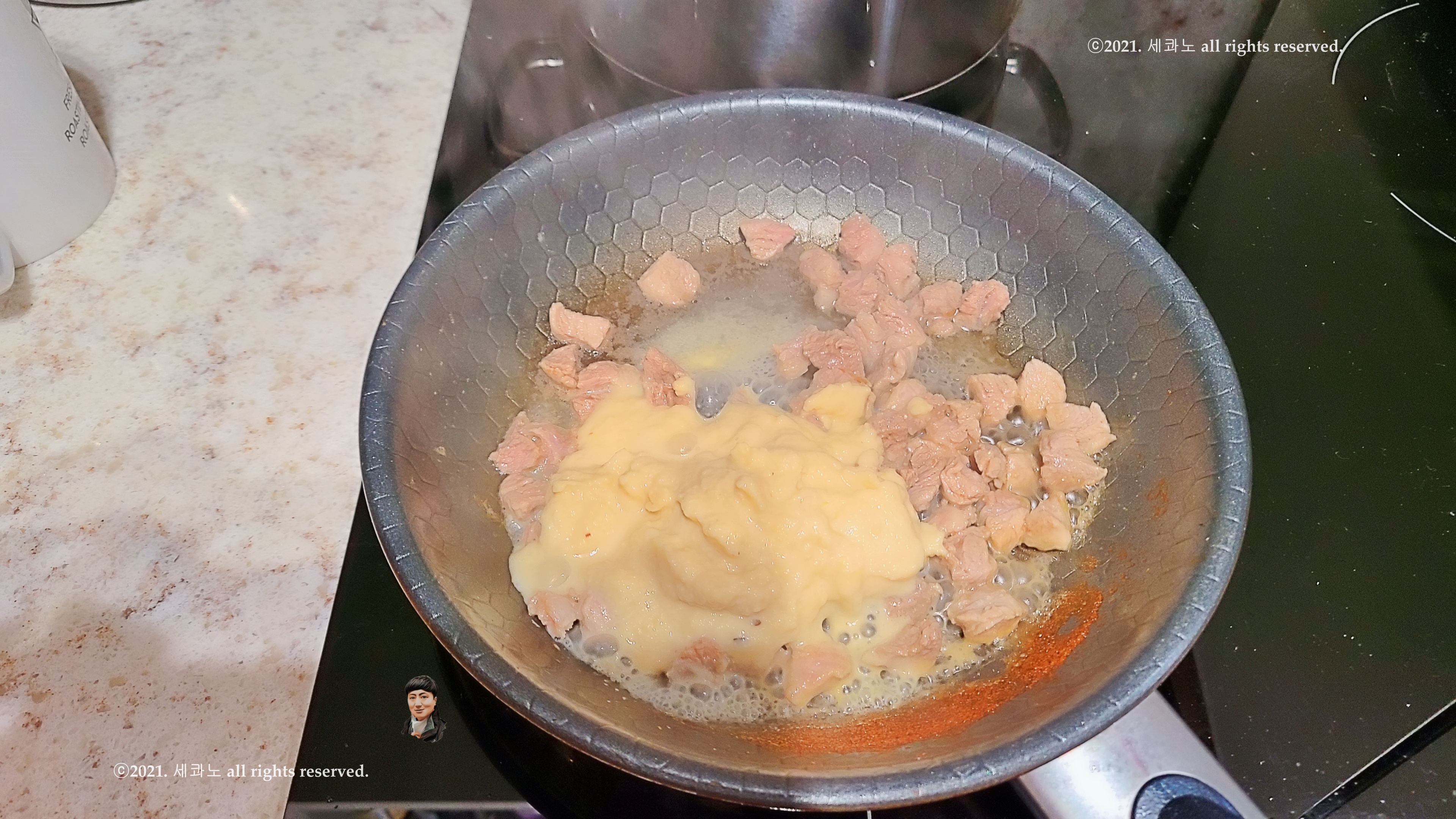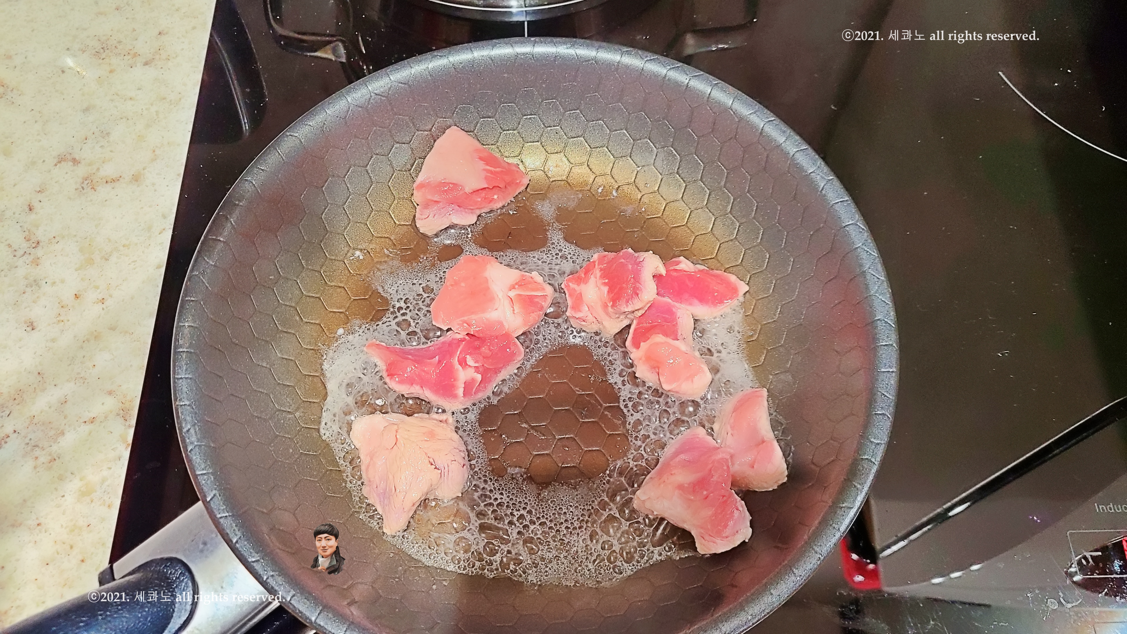소금, 후추, 마늘, 맛술 등으로 밑간, 잡내 제거를 하면 더 좋았겠지만