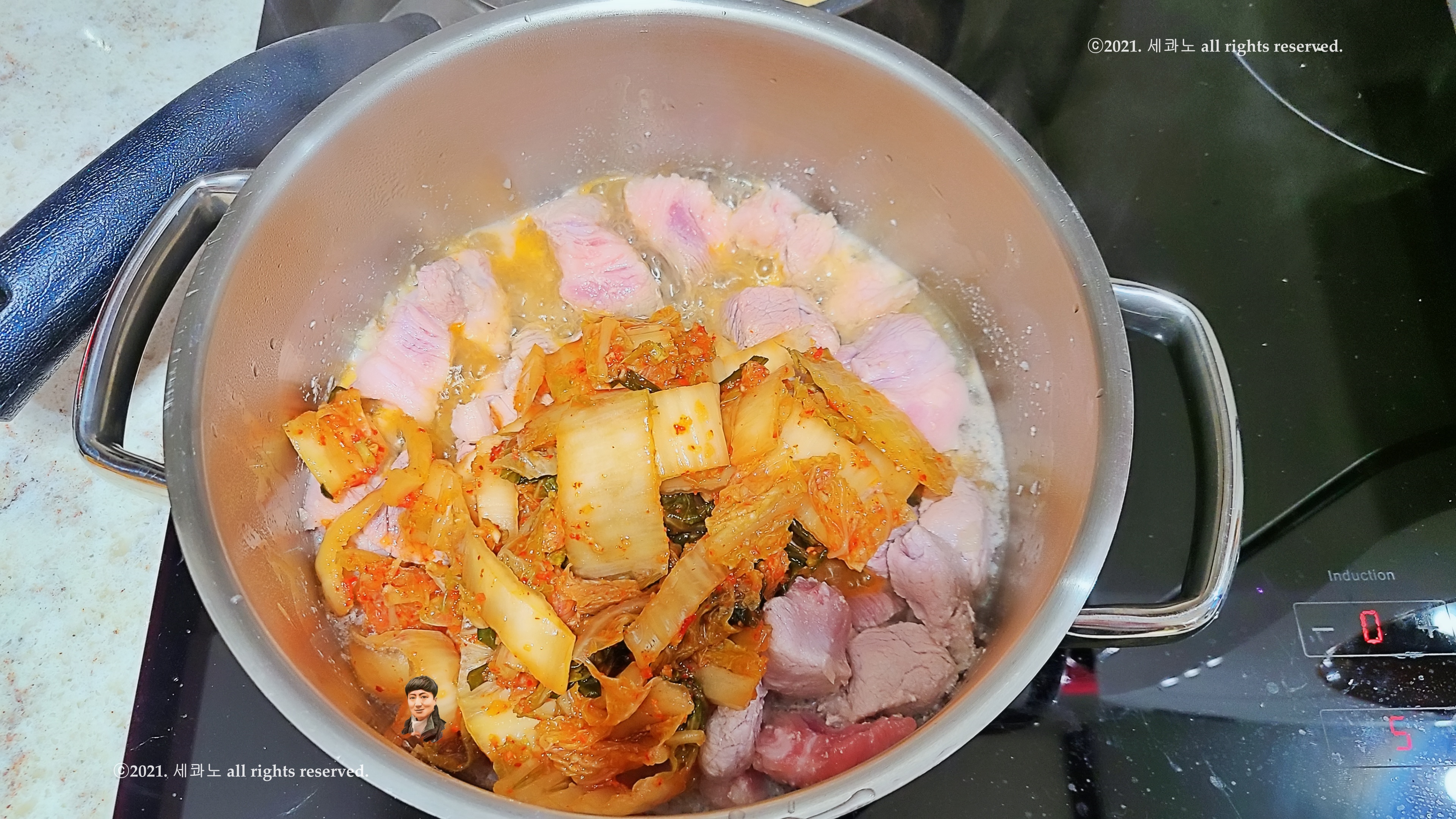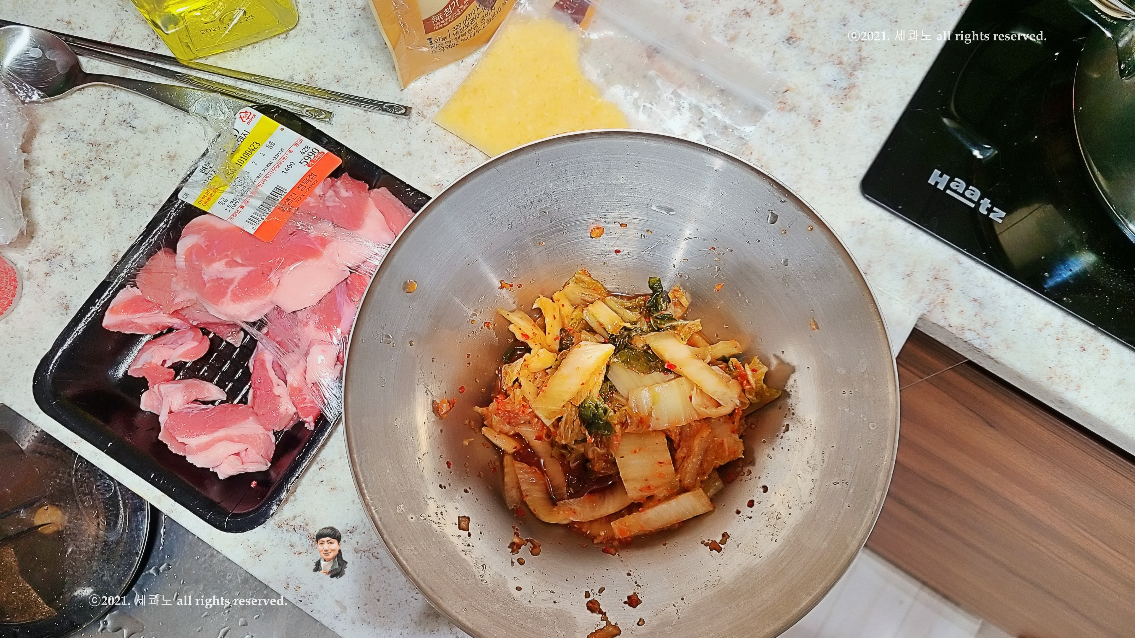 우리가 먹을 것은 역시 김치를 넣어서 만들었다.