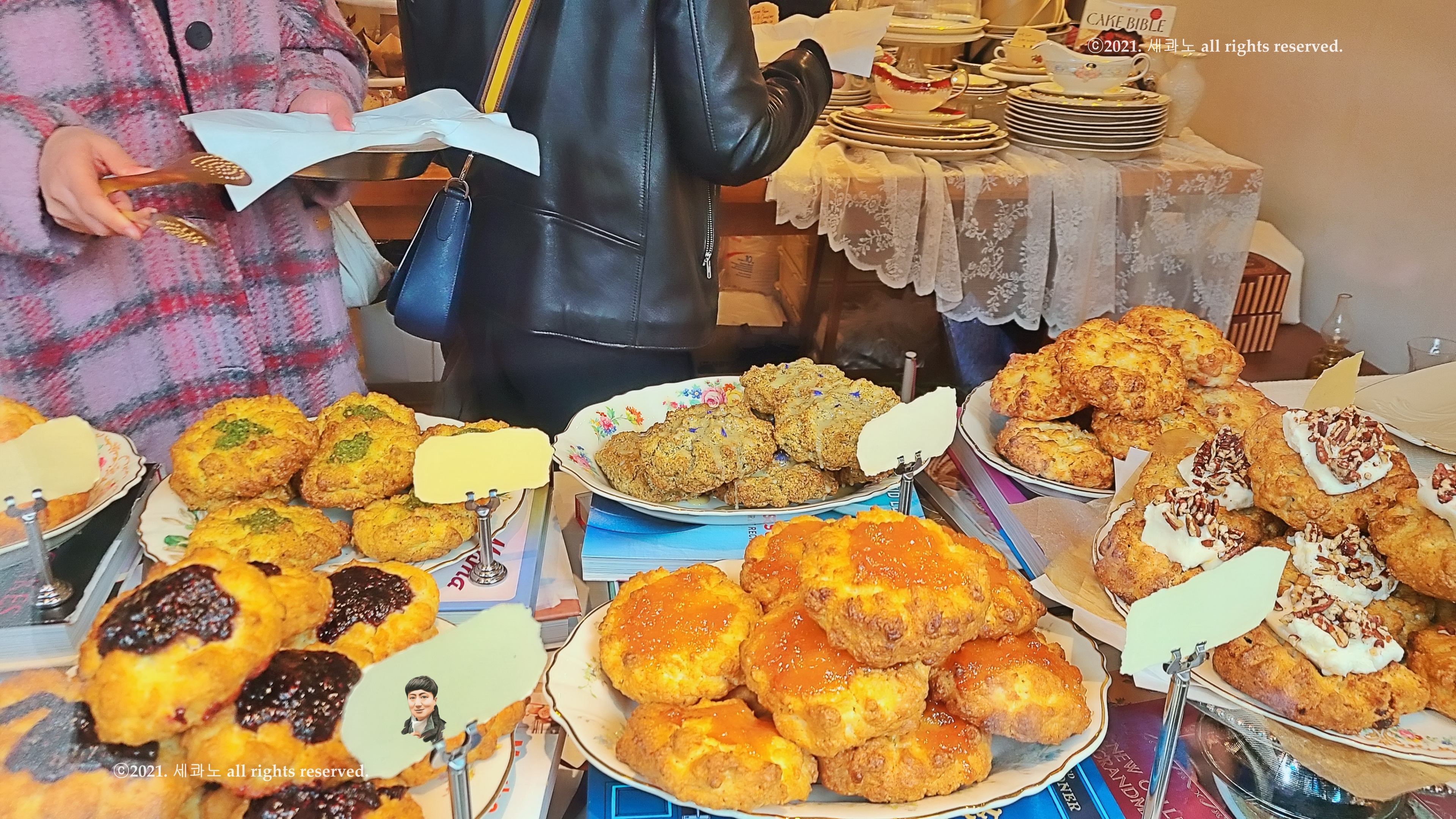 양이 한정되어 있기 때문에.. 늦게가면 원하는 스콘을 못 고를 수도 있다.