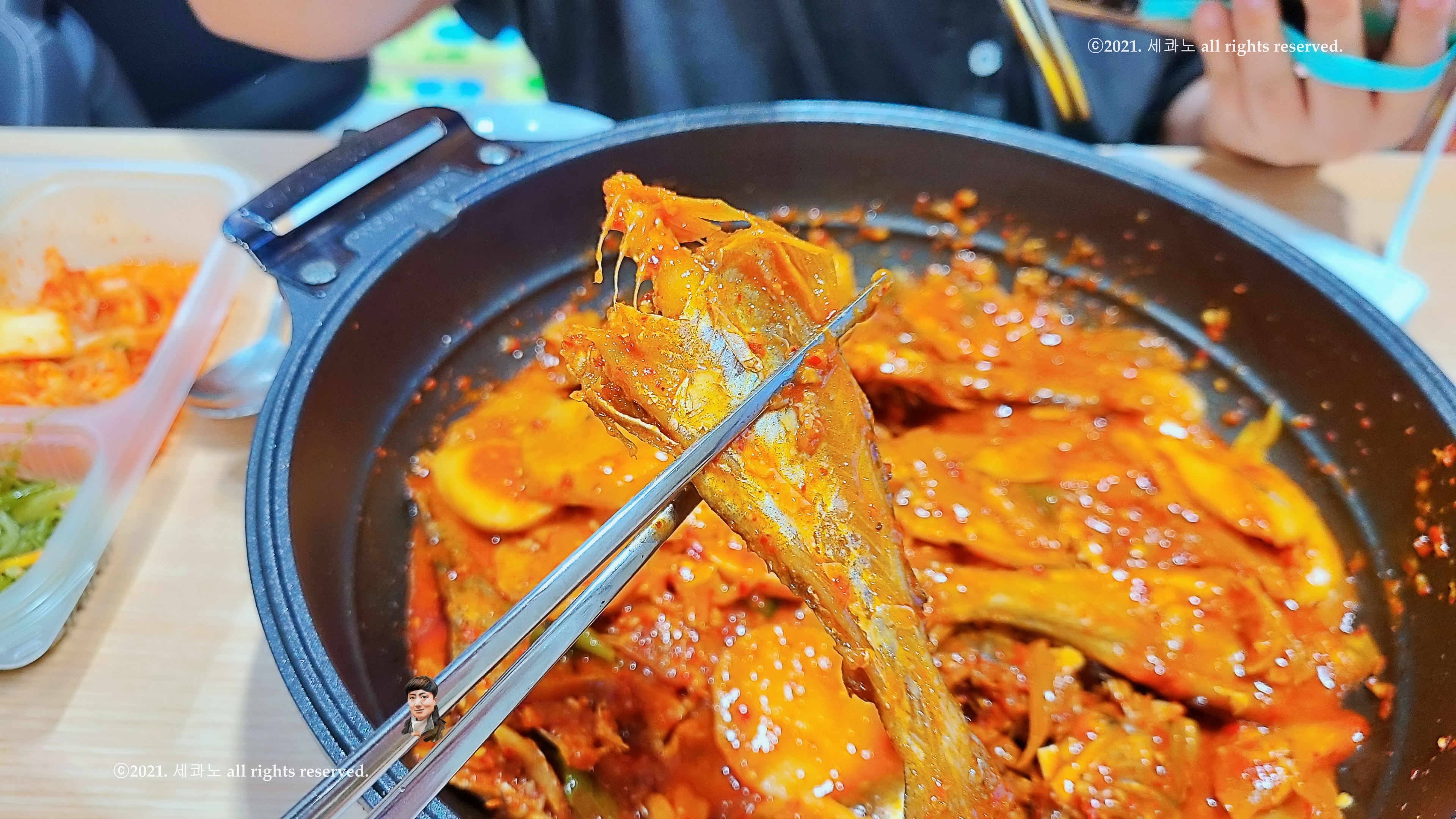 양념을 따로 떠서 같이 먹으면 더 맛나다고 안내해준다.