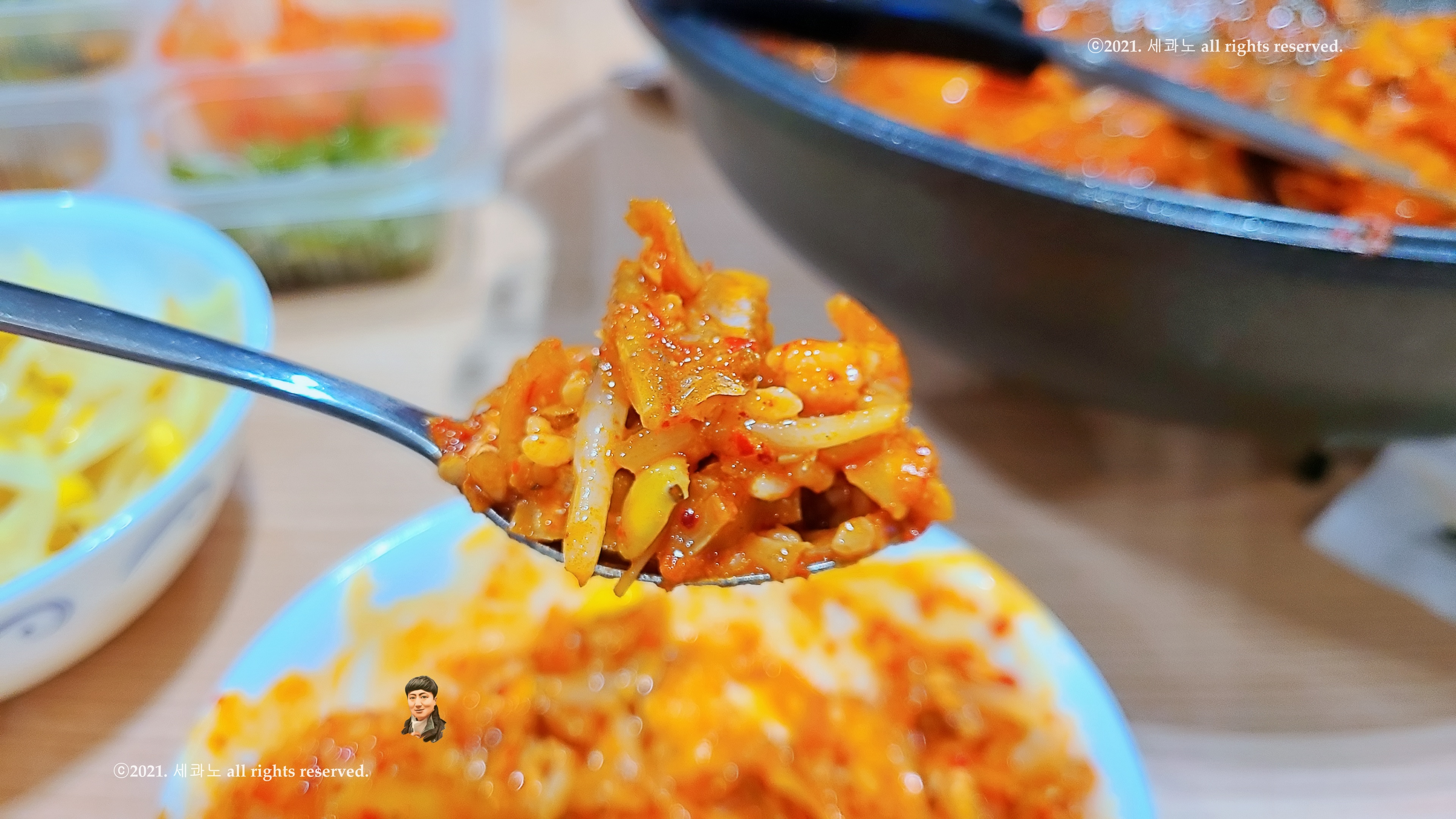 콩나물을 보았을 때는 매운맛이 나지 않을까 짐작했는데...