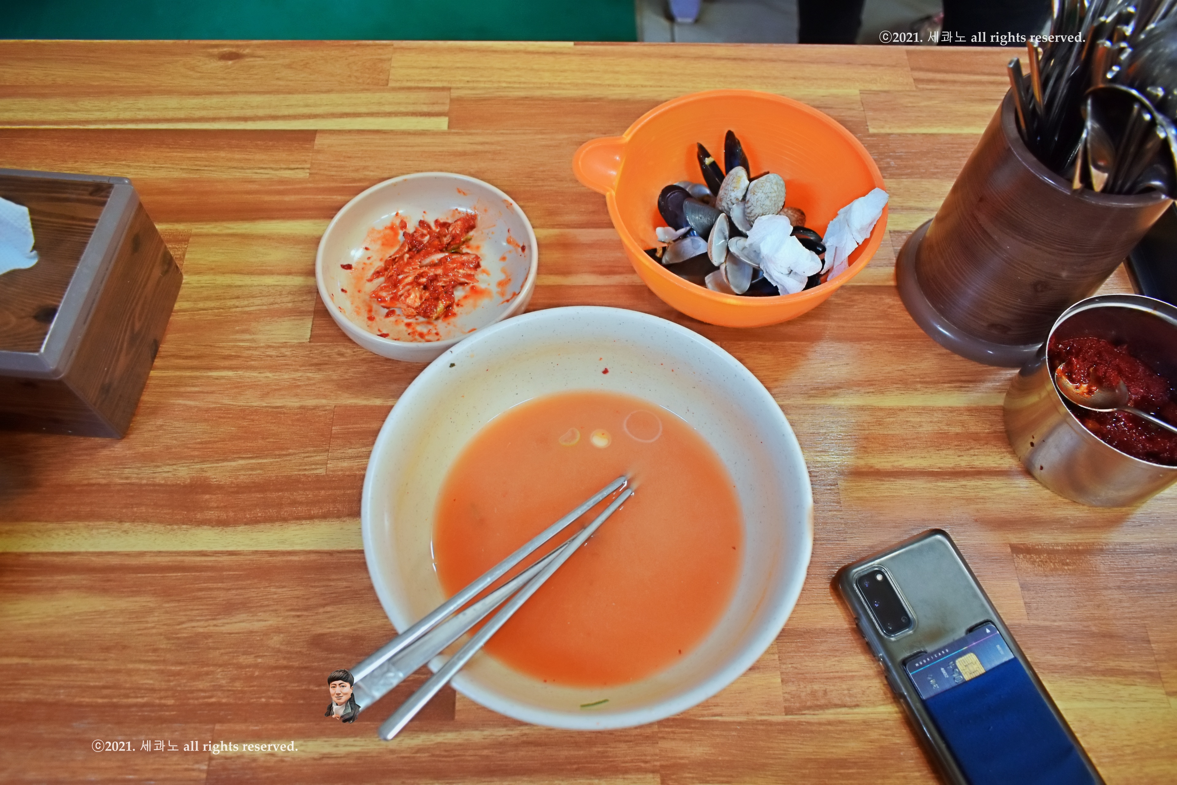 멸치, 바지락 등이 들어가 깔끔, 개운, 시원한 맛이 좋은
