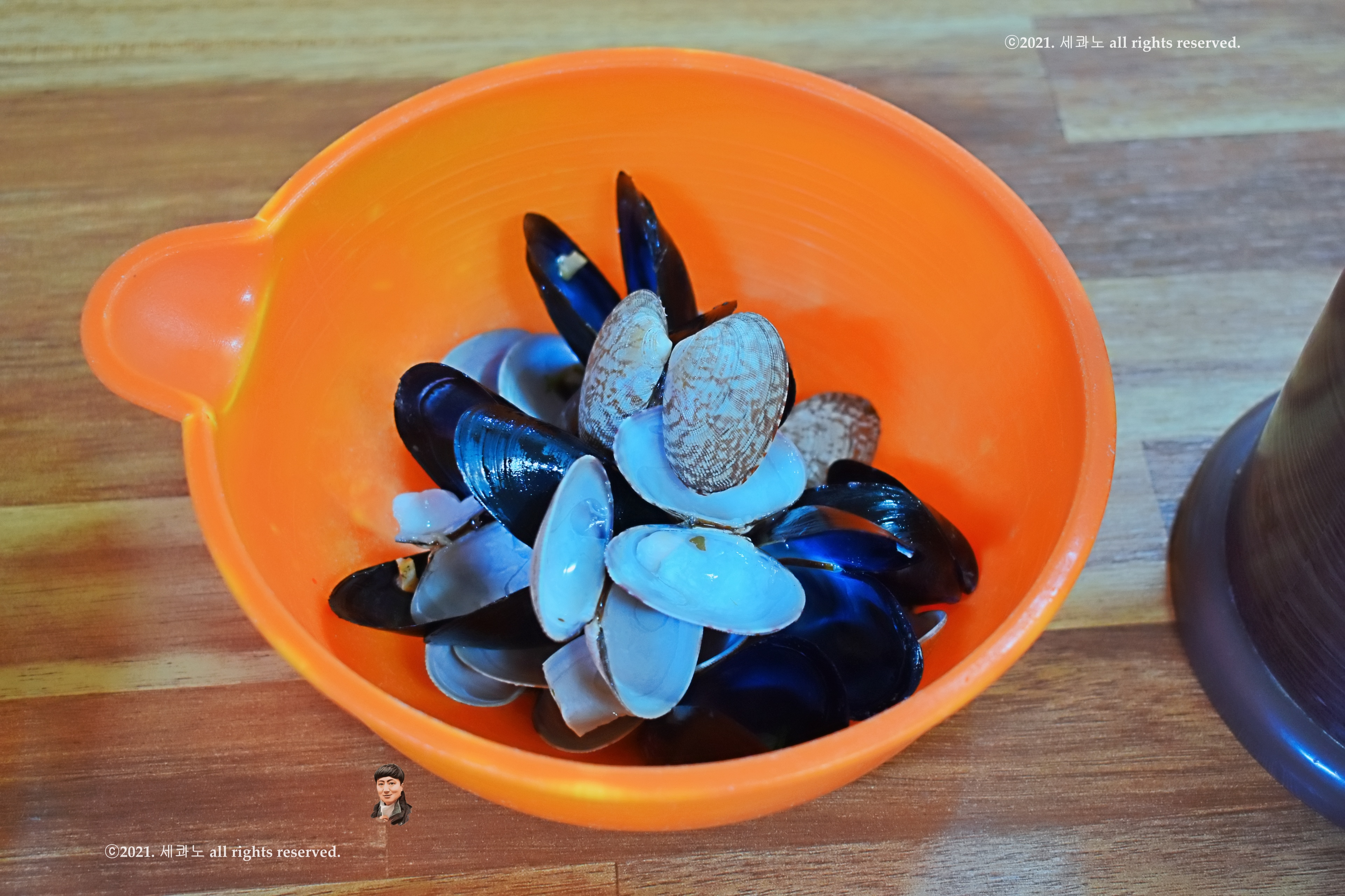 바지락 등의 조개가 들어가니 국물이야 당연히 시원하지