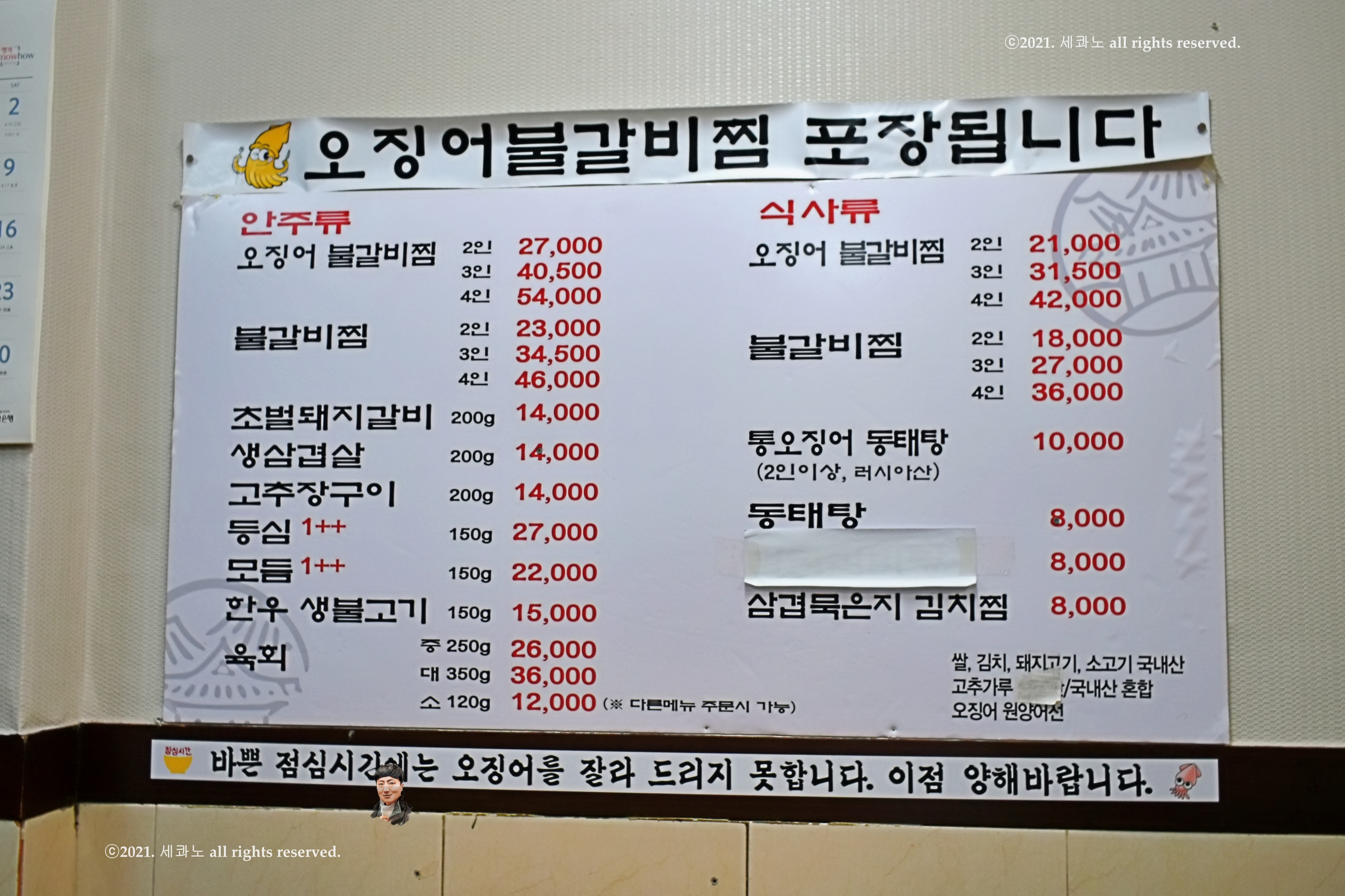 오징어가 들어가지 않은 그냥 불갈비찜도 있으며