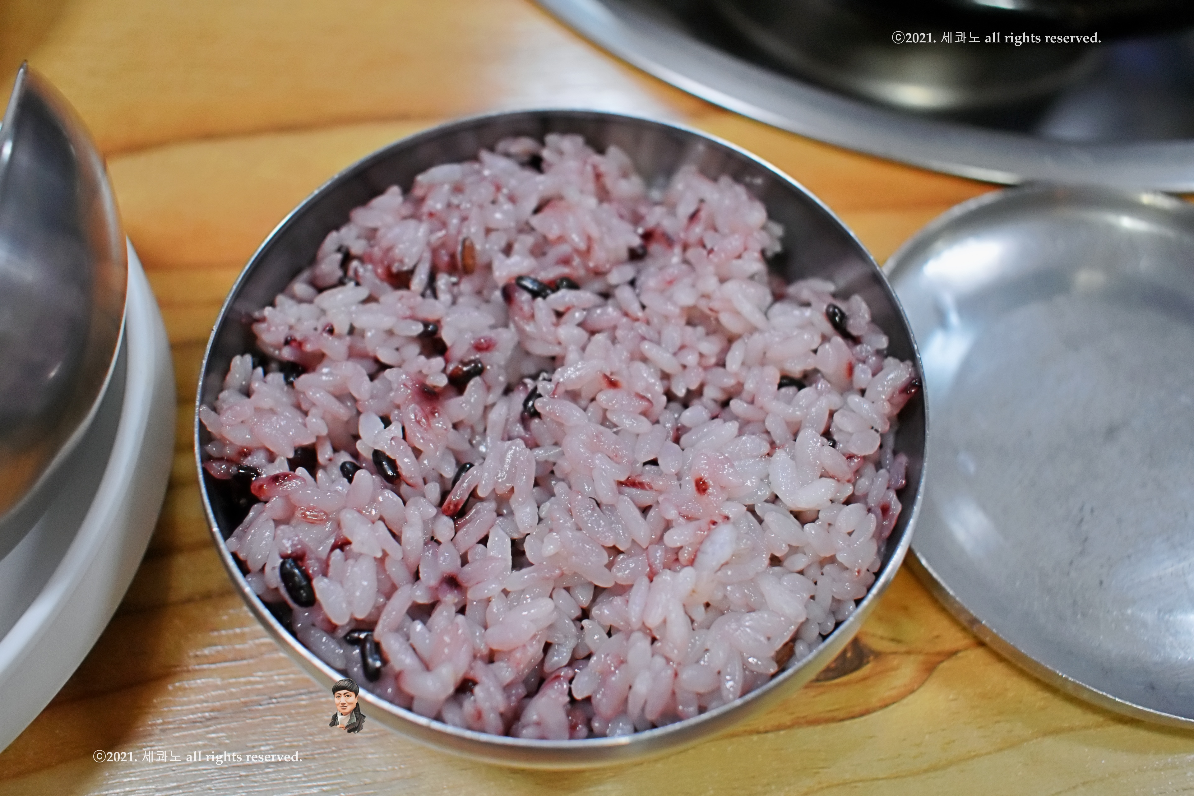 안주가 아닌 식사다 보니 흑미밥이 나왔는 데