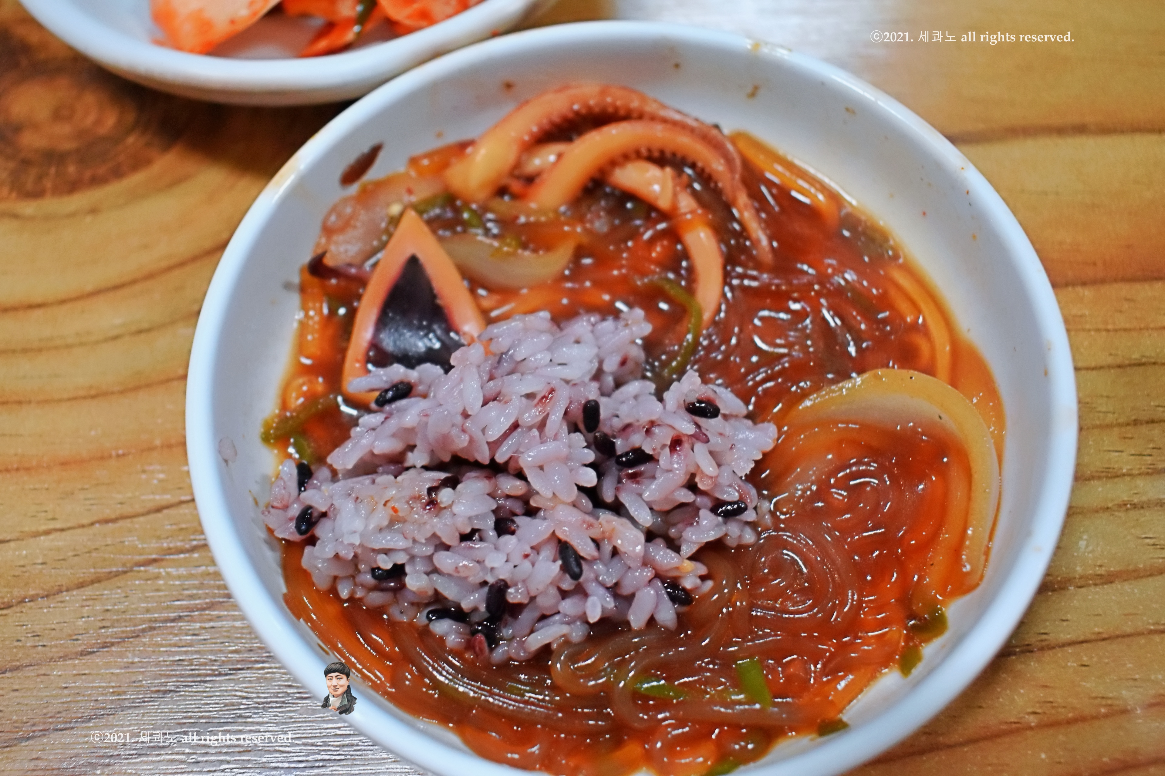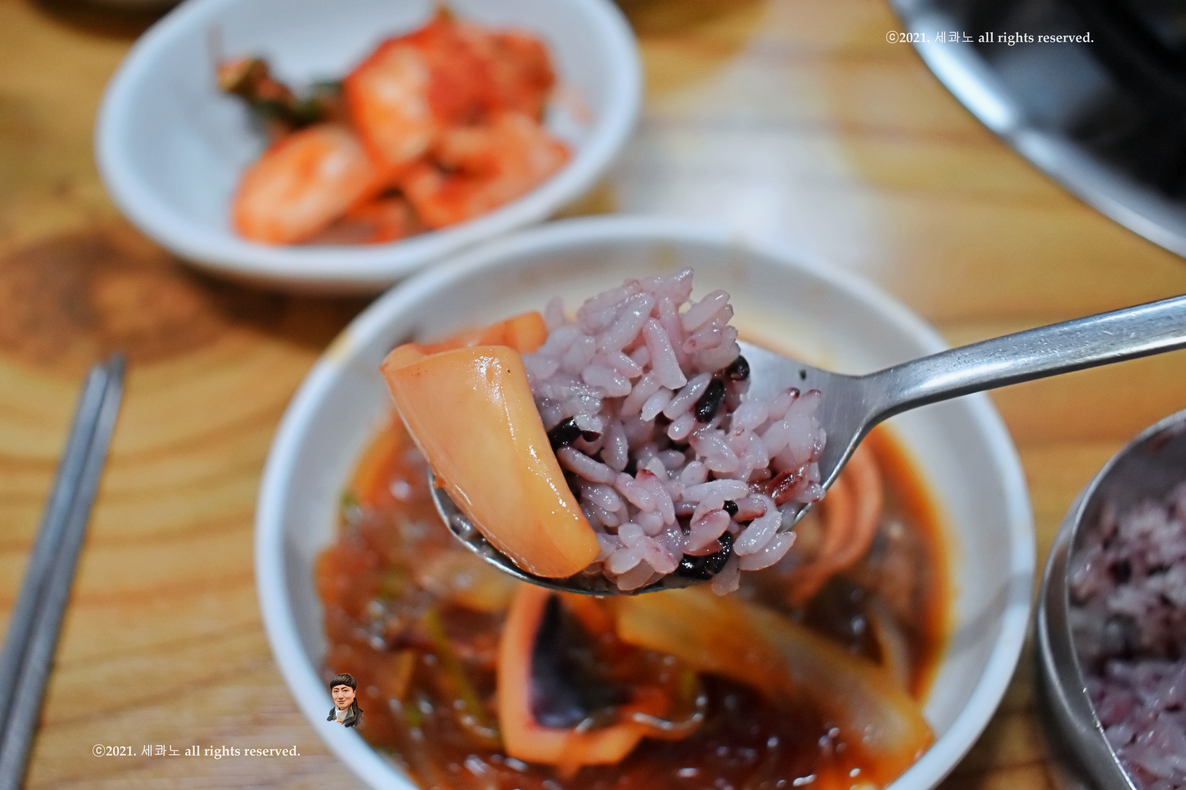 설명대로 당면부터 먹고, 오징어를 먹고, 떡도 먹어주고