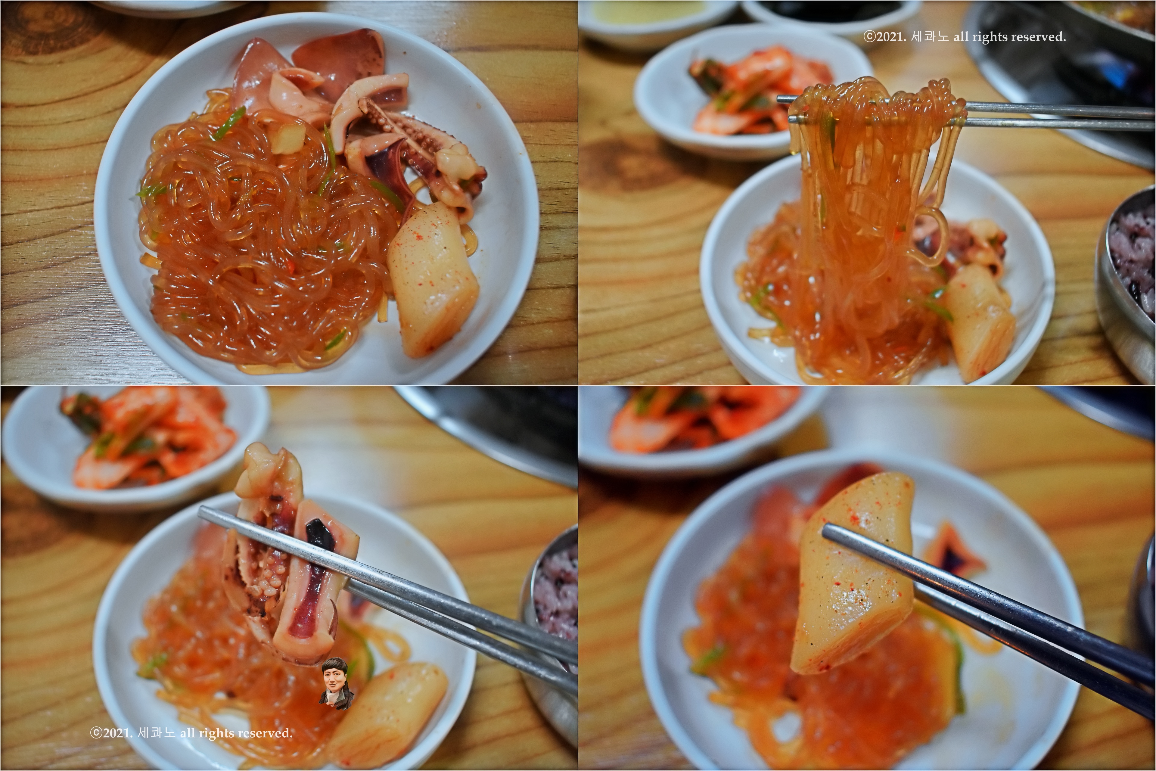 매운 뼈 구이, 감태 감칠 국수, 통 오징어 불 갈비찜