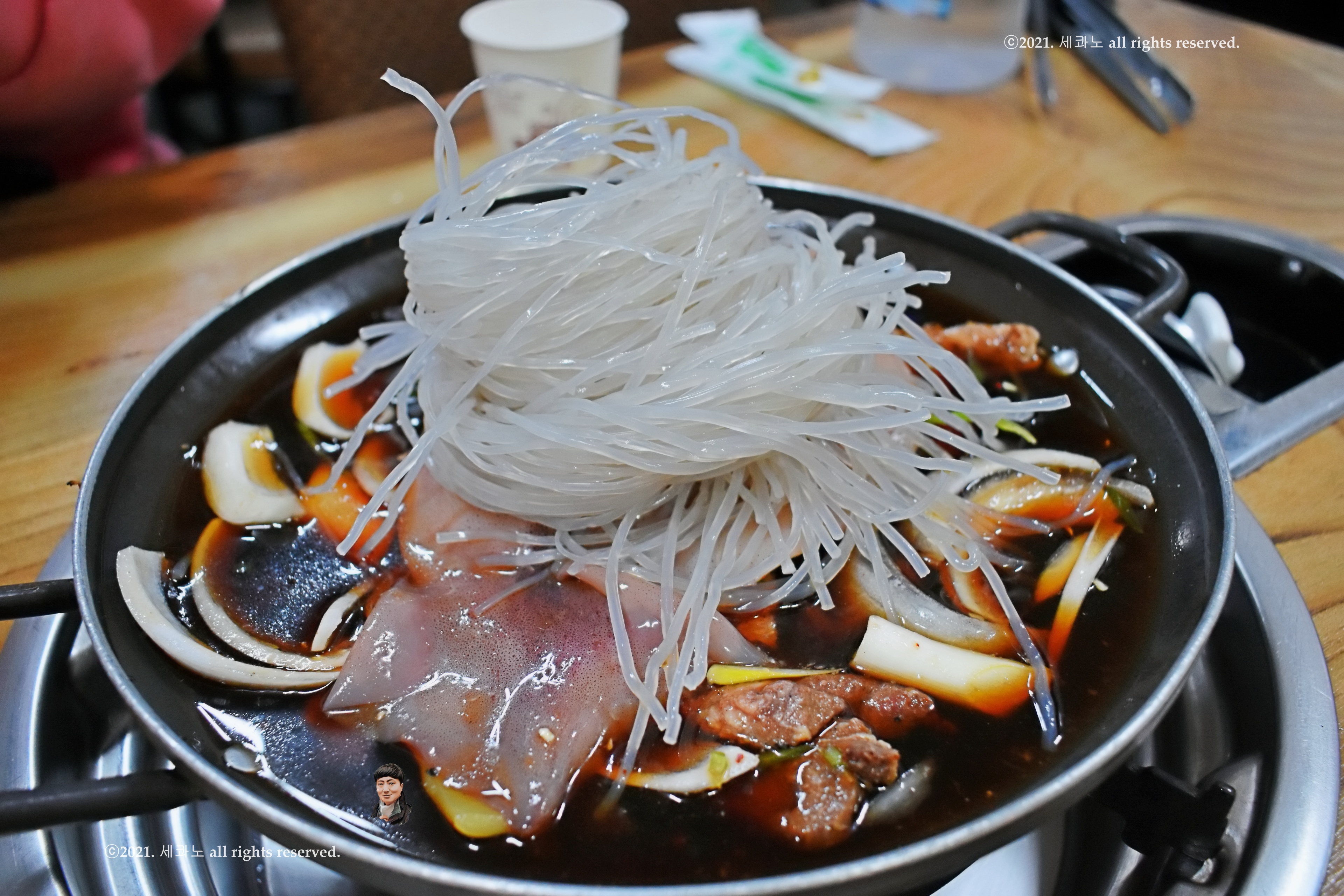 오징어와 당면을 같이도 먹었다.