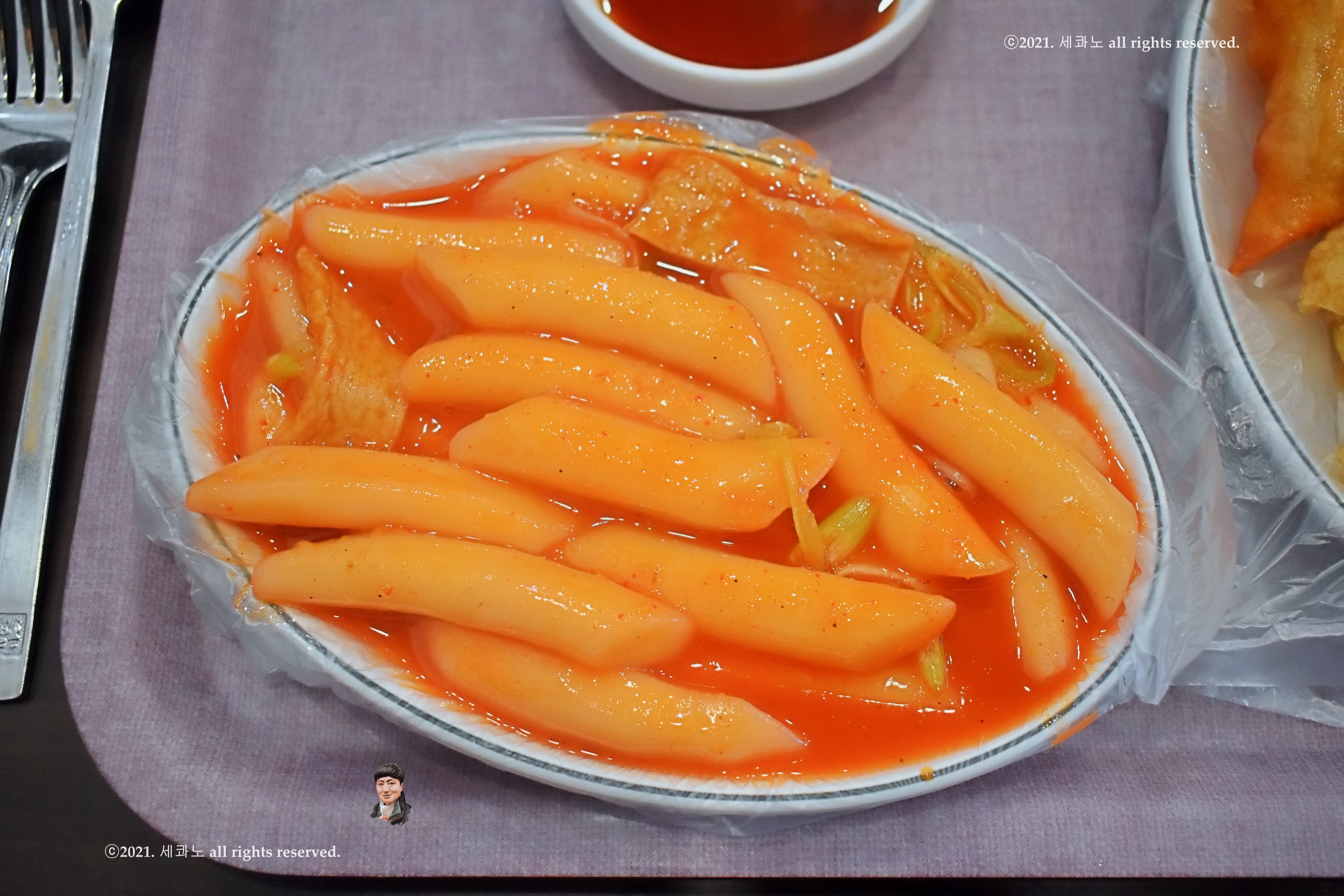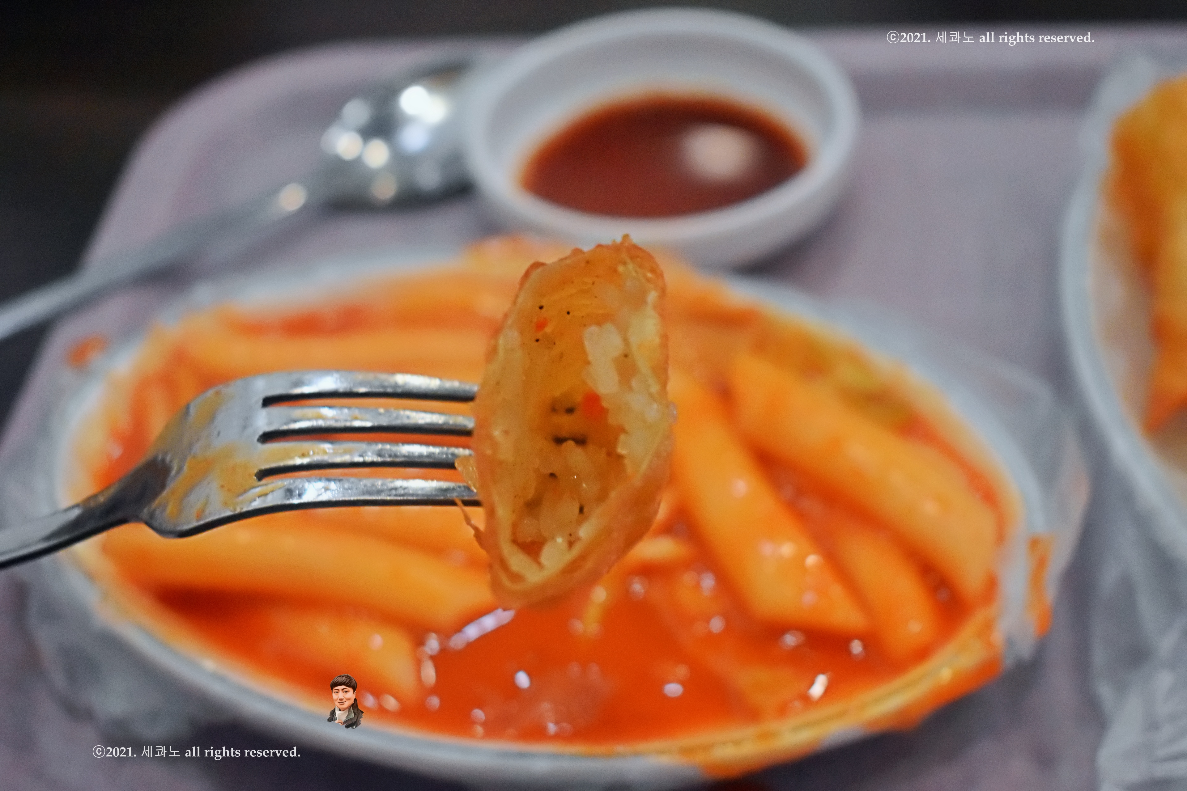 숟가락을 이용해 소스와 함께 떡을 먹는 게 맛나더라