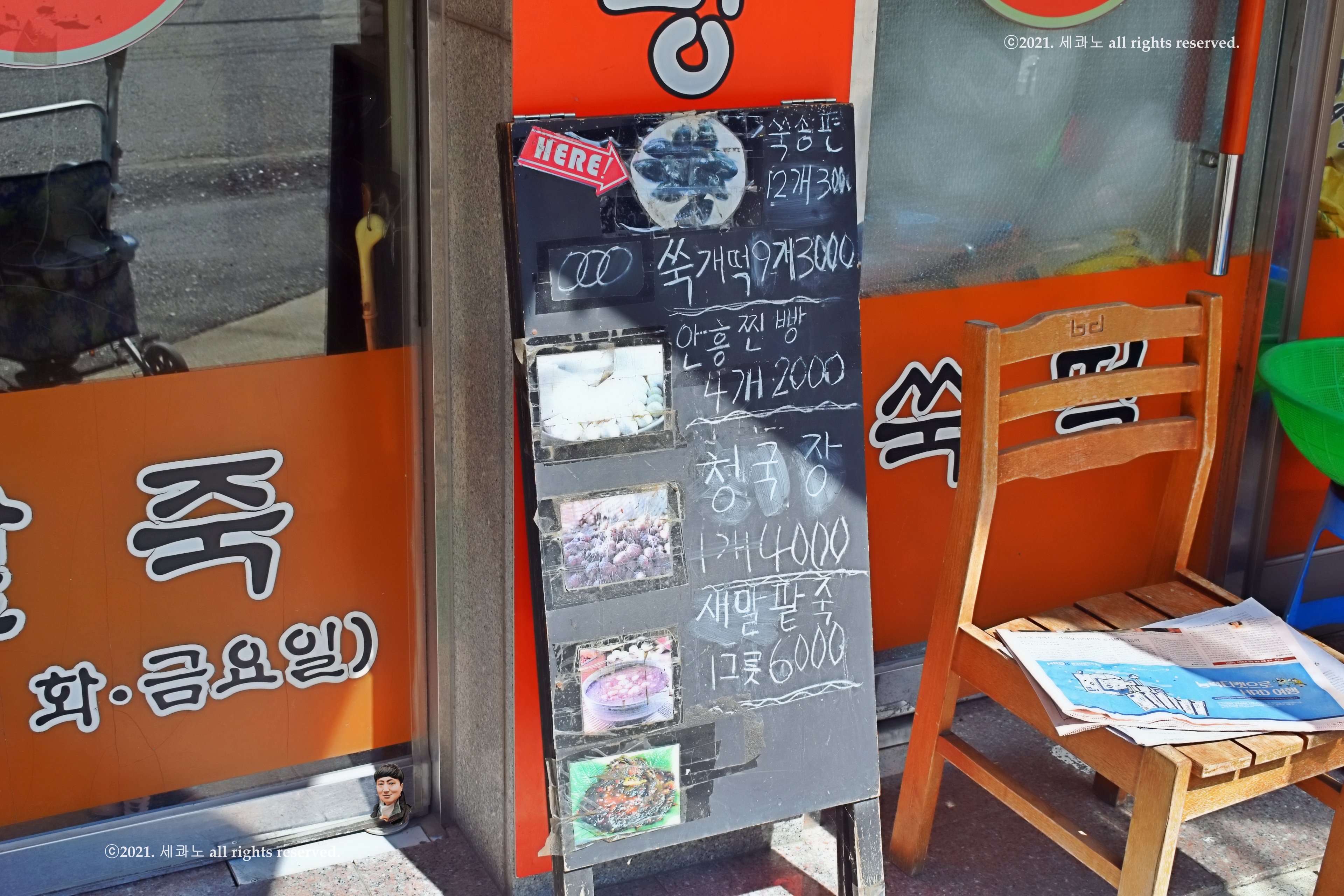 팥죽, 쑥떡, 찐빵, 청국장을 파는 가게로