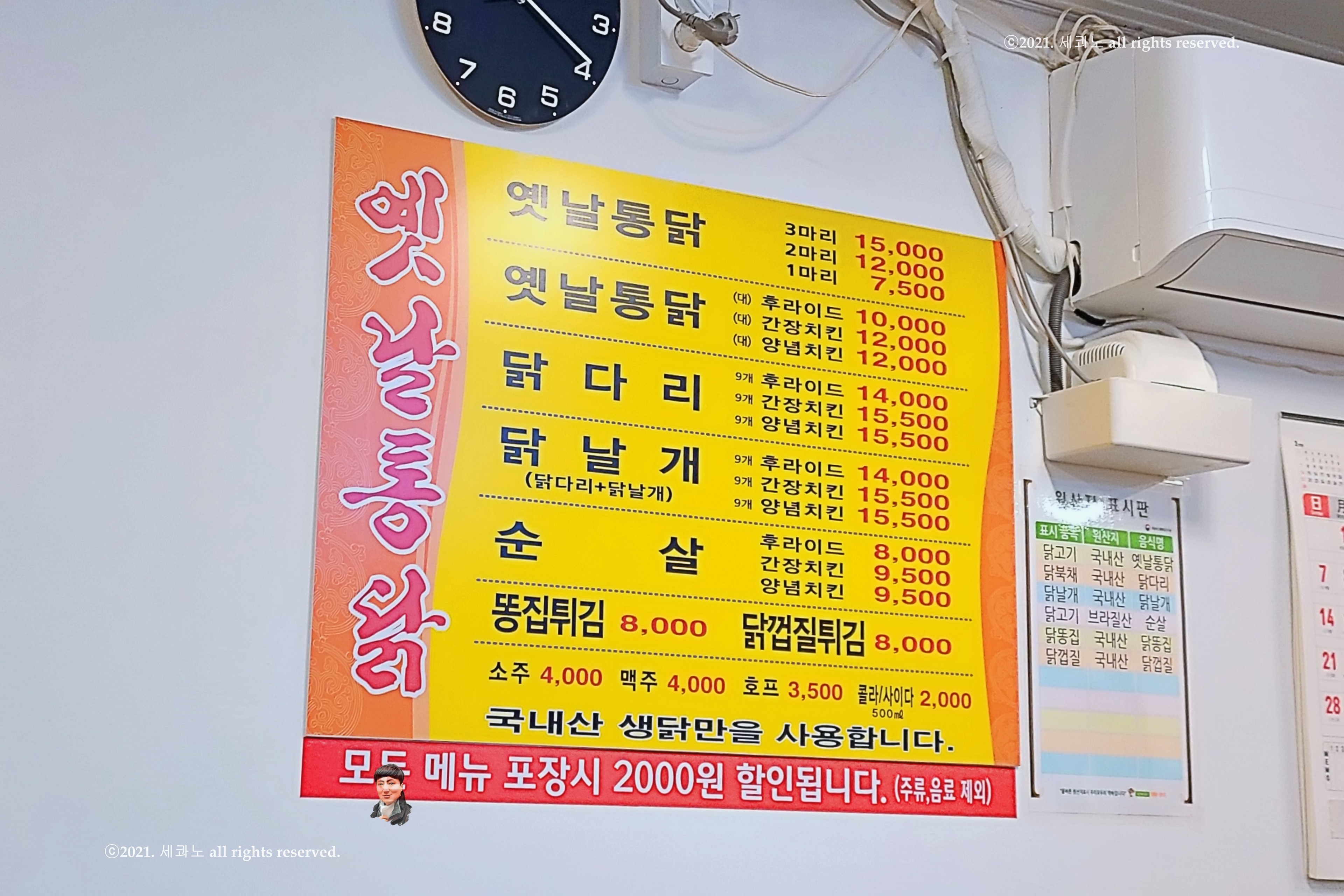 국내산 생닭만을 사용한다 메뉴판에 적혀 있는데