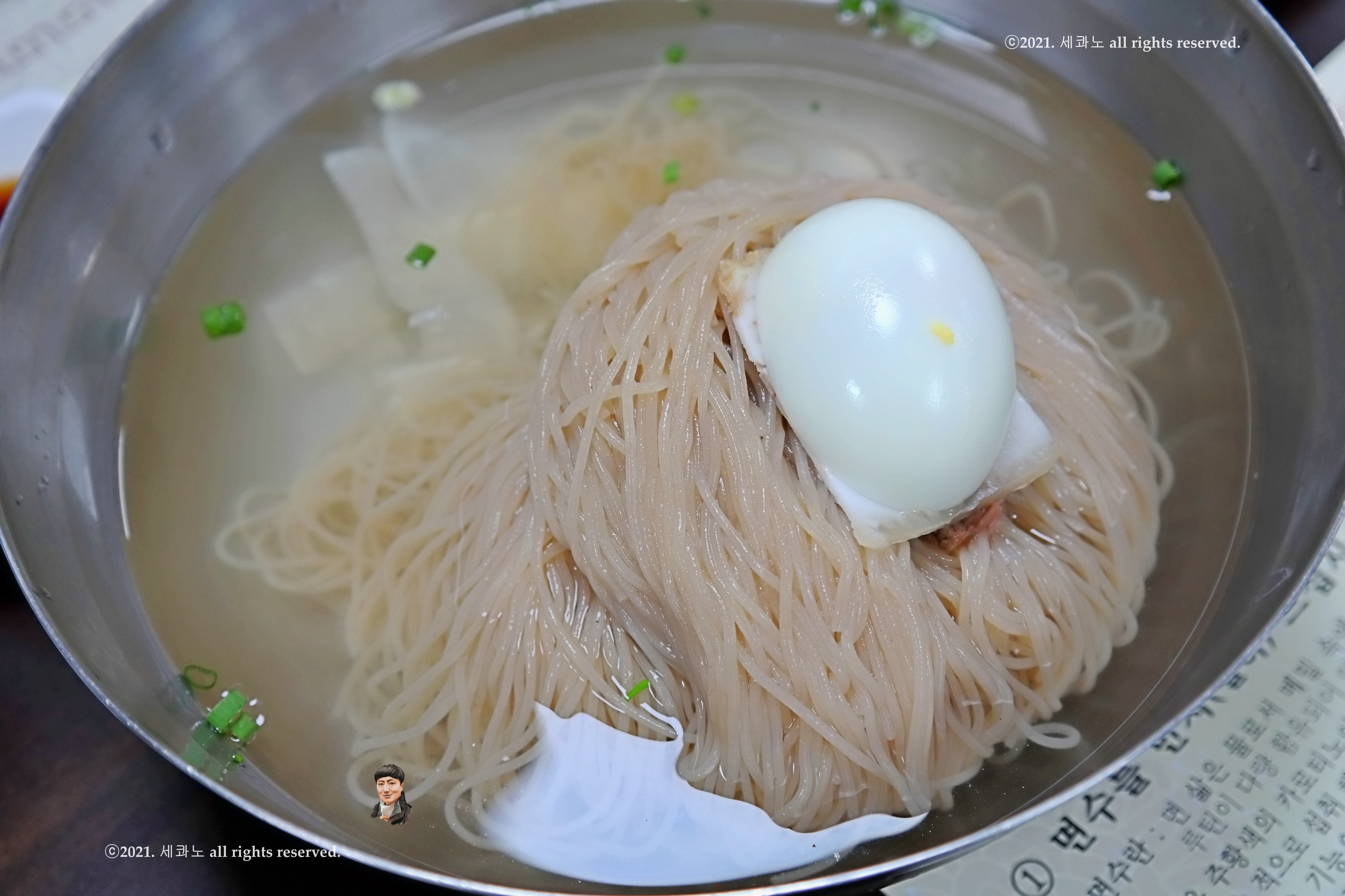 원래는 살얼음 동동 낀 냉면을 내어주며
