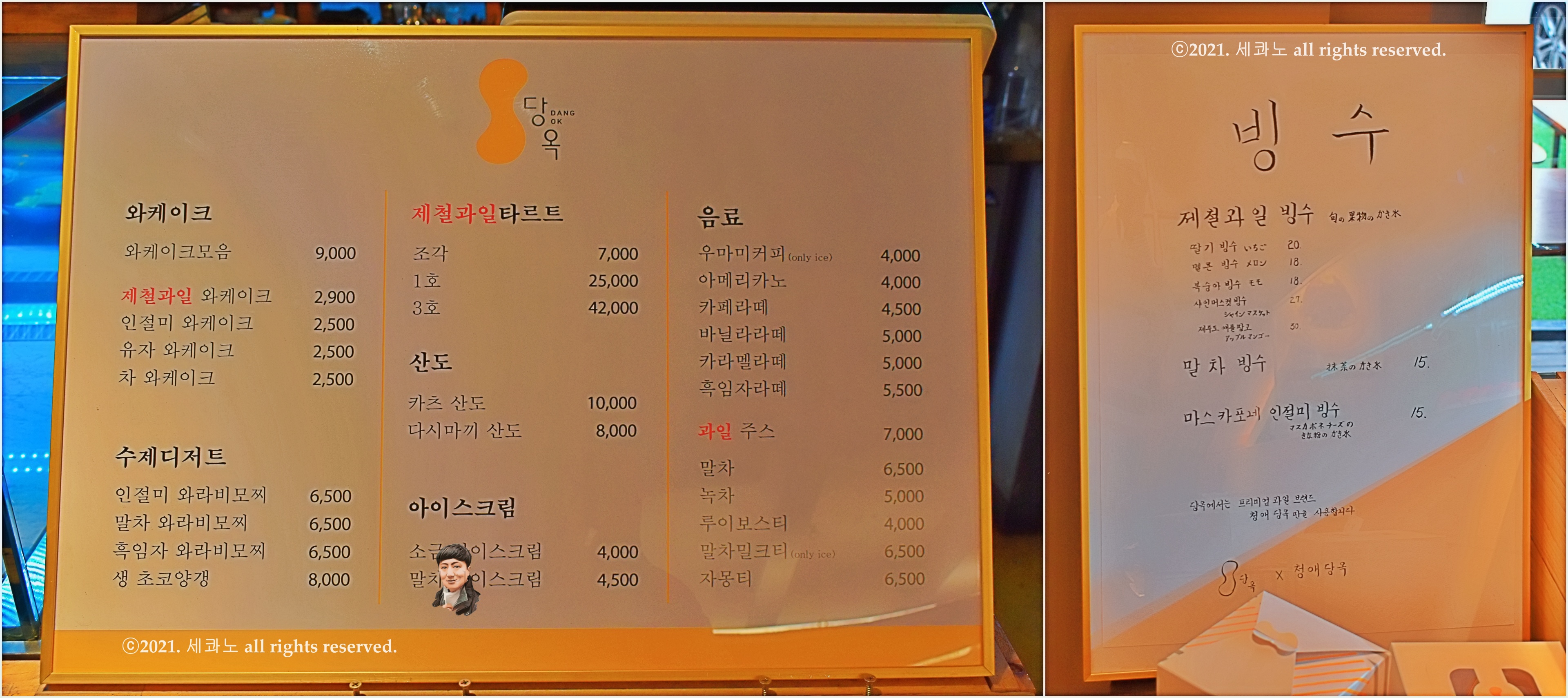 기타 다른 디저트와 음료, 빙수 등의 메뉴, 가격