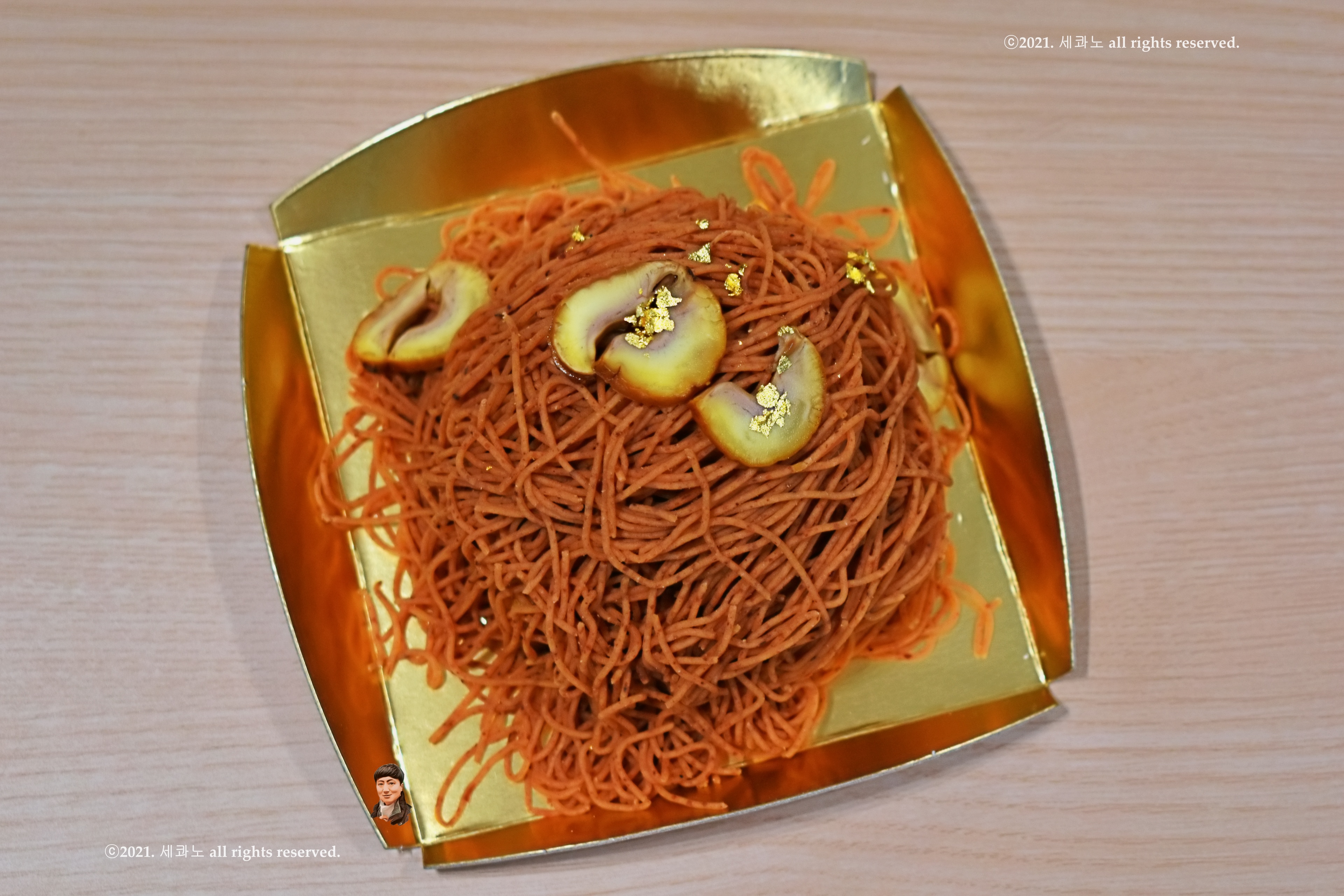 거기에 밤 페이스트에 과학기술을 더해 뽑아낸 면 모양의 디자인은