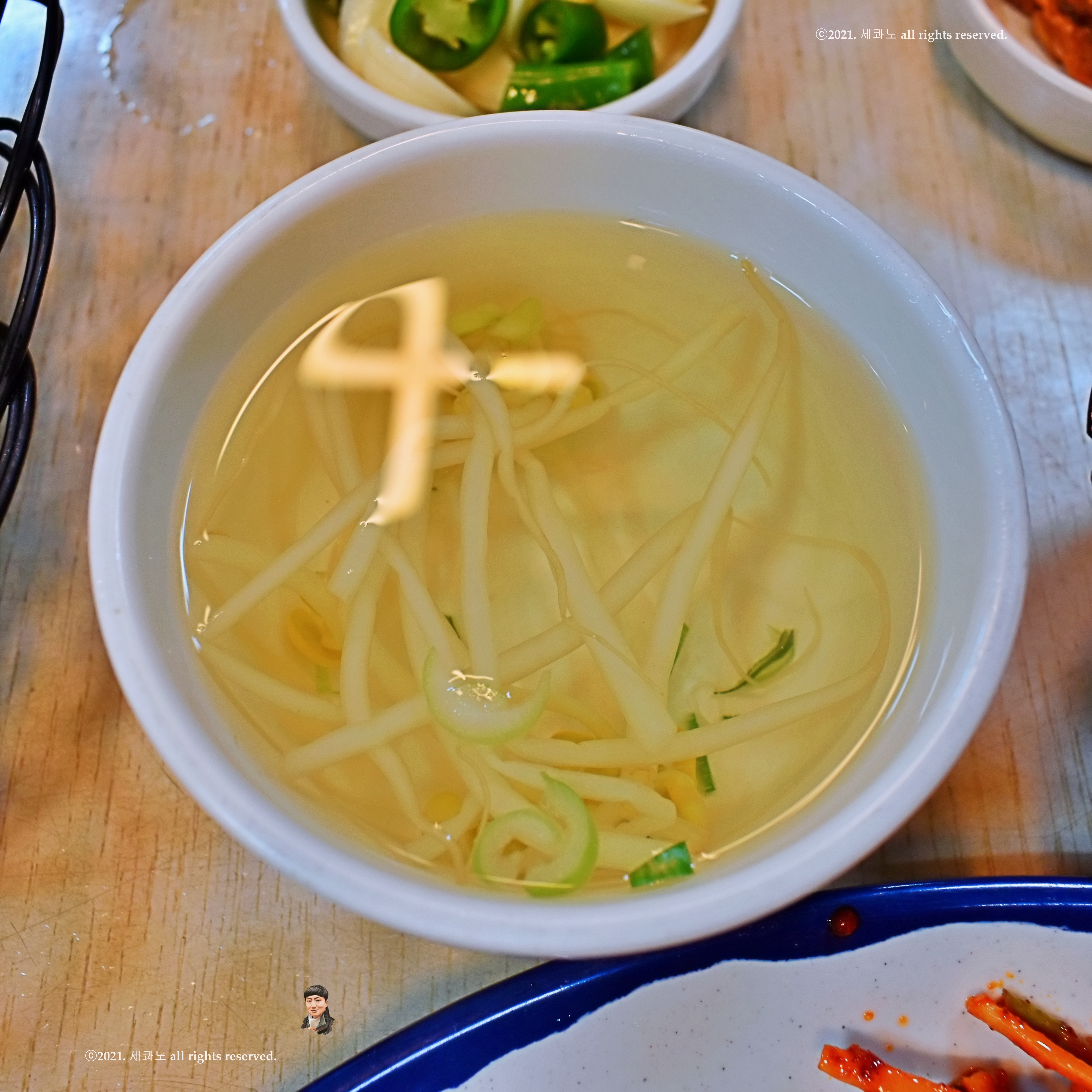 콩나물 국과 깍두기가 공깃밥과 함께 반찬으로 나왔다.
