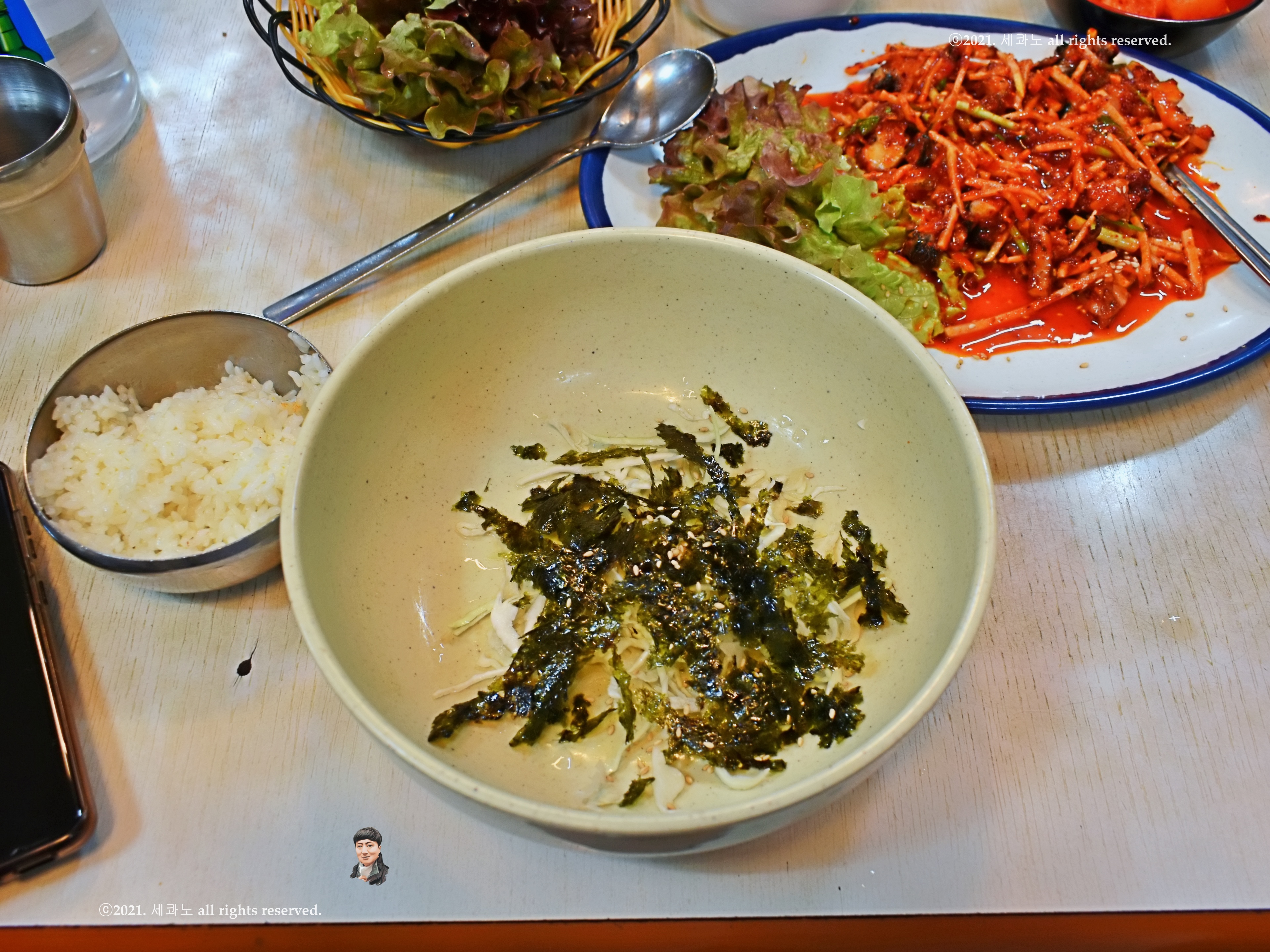 양배추와 김가루가 들어가 있는 대접을 내어주며