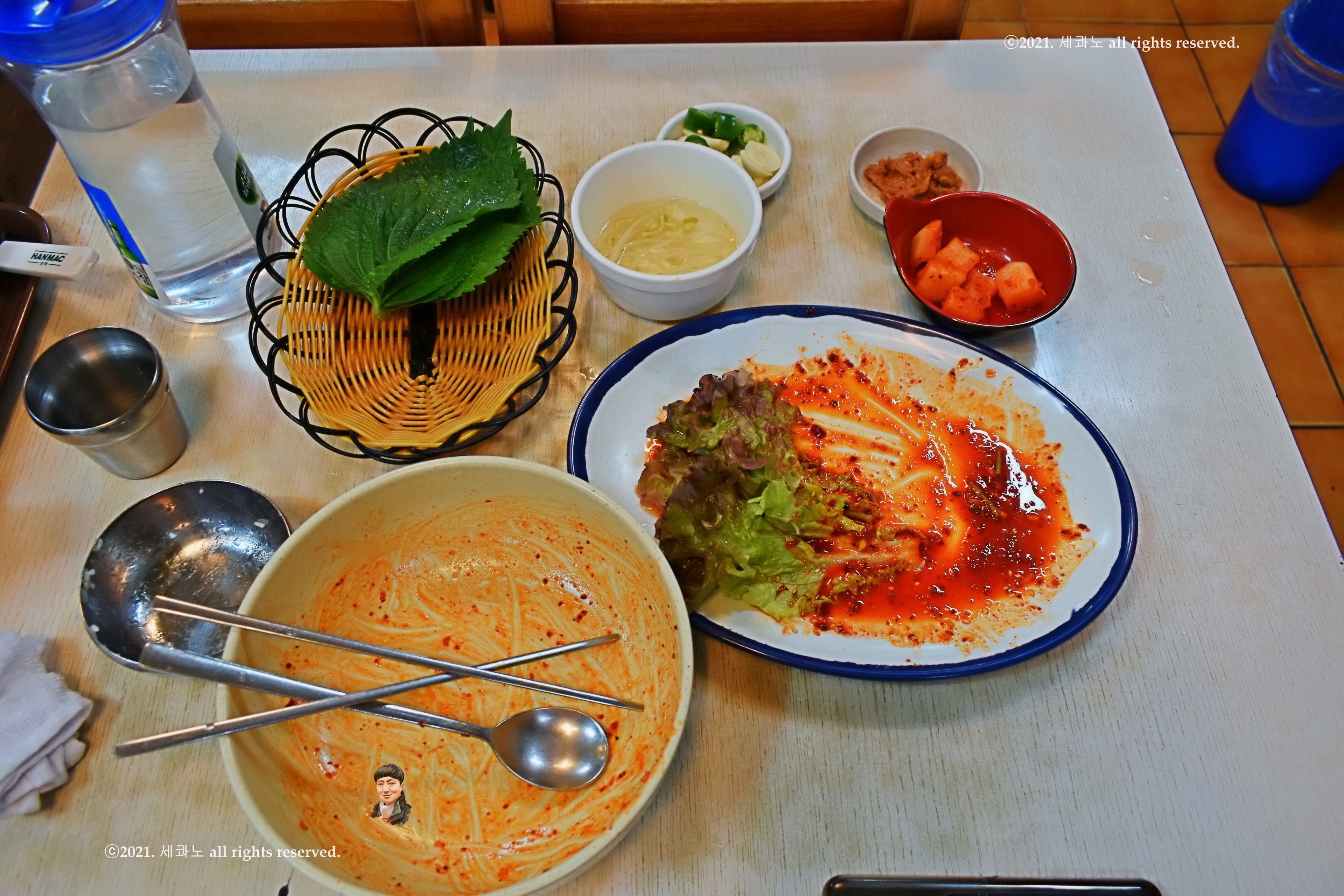이곳 대구 회무침 백반집이 첫 번째 코스로