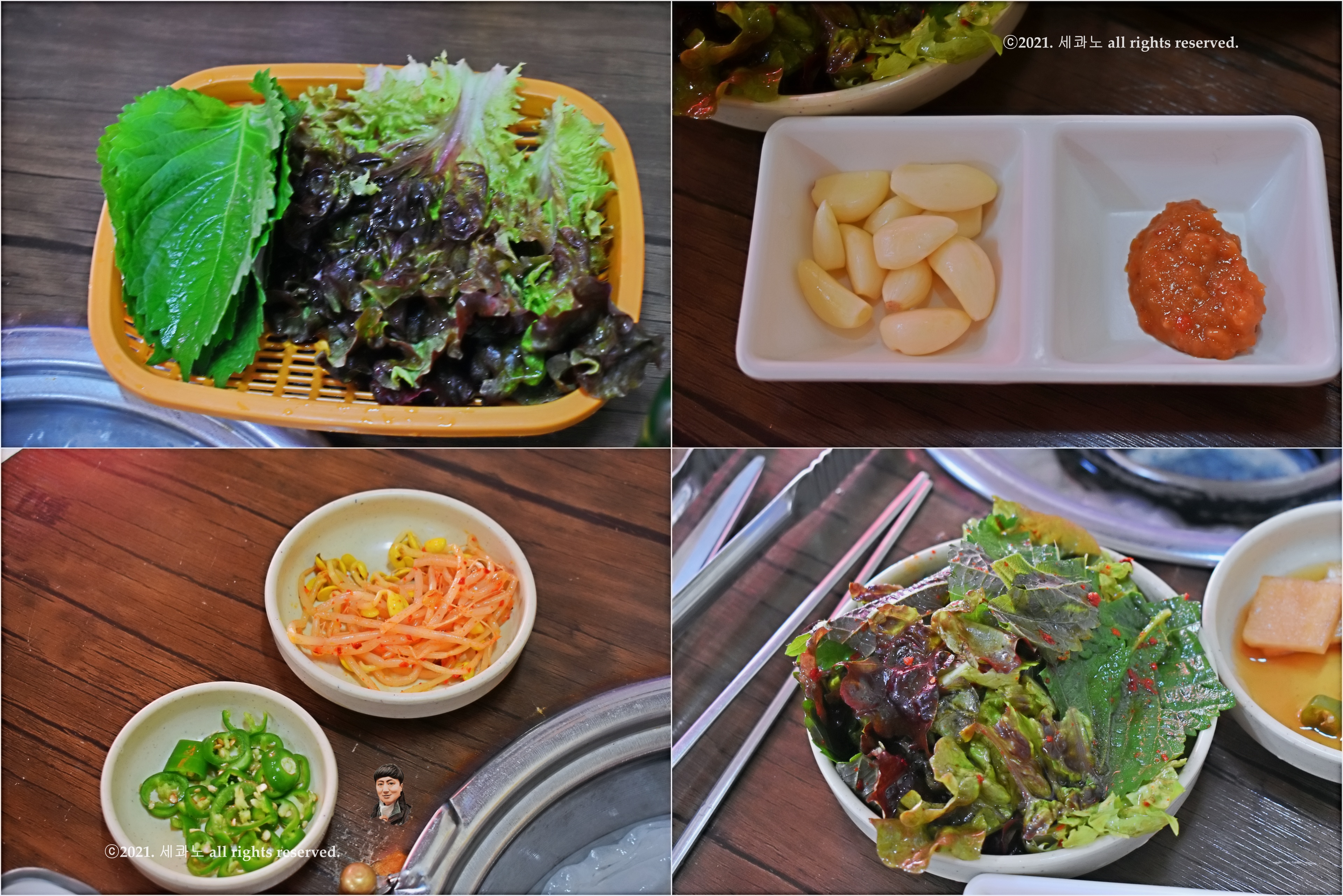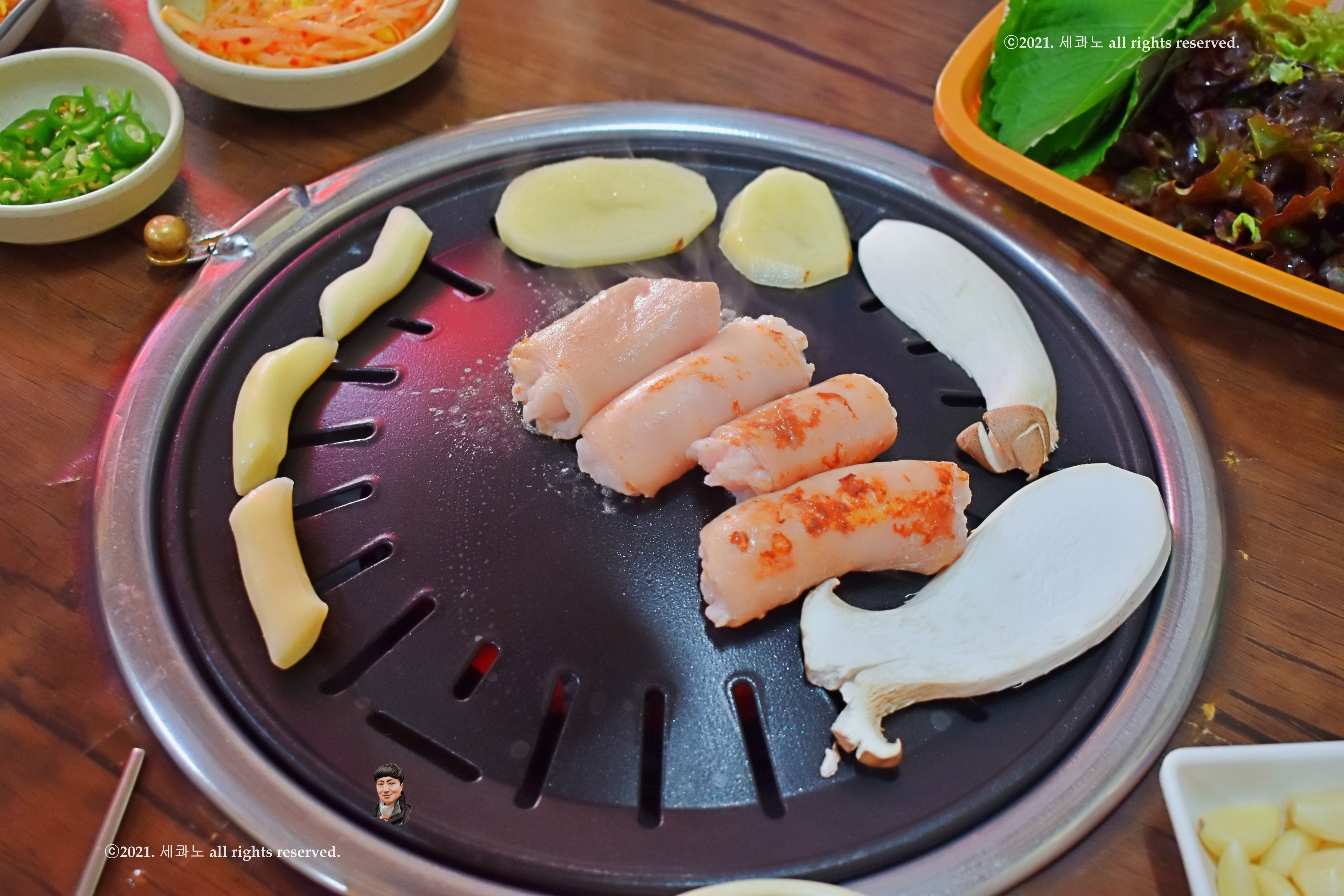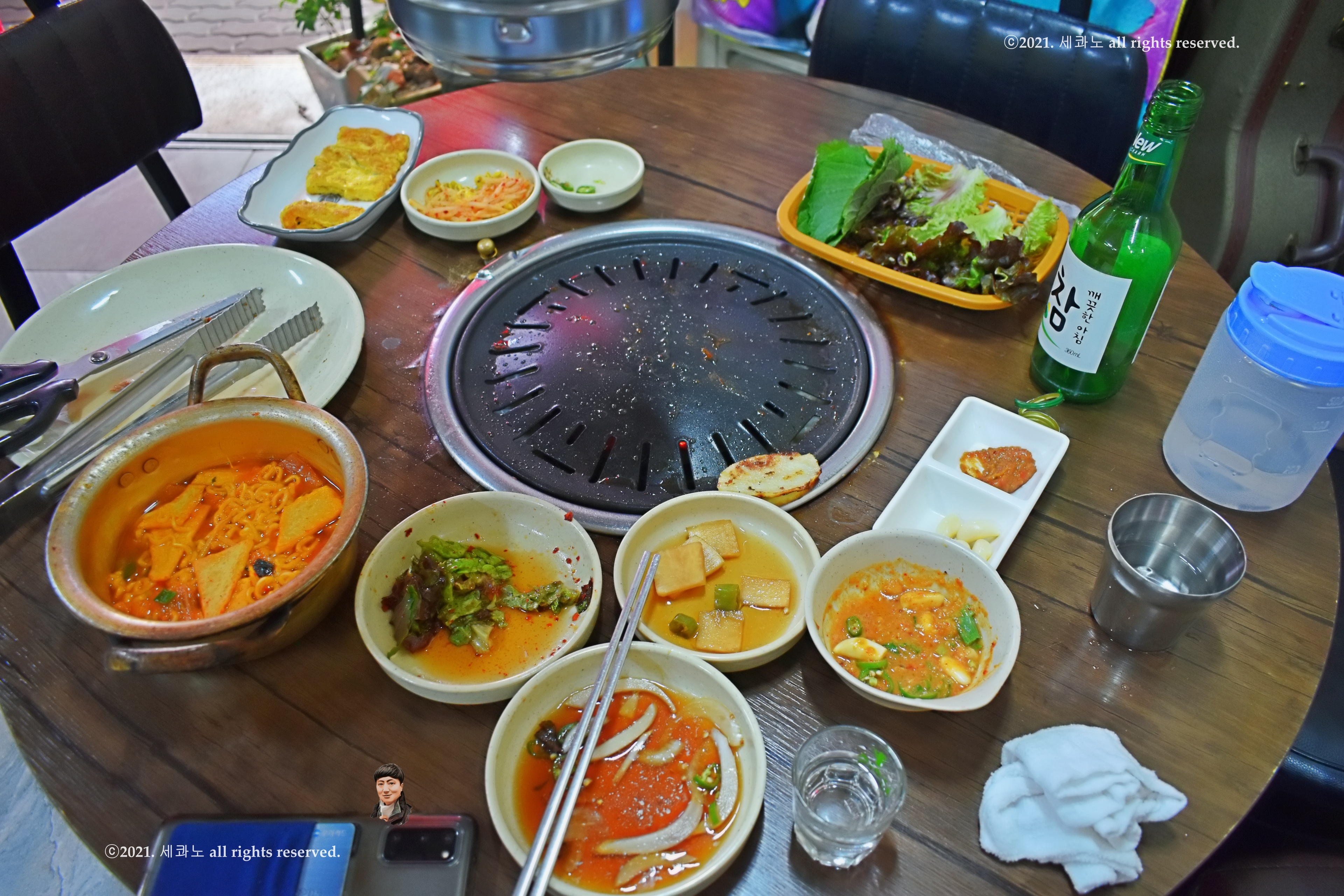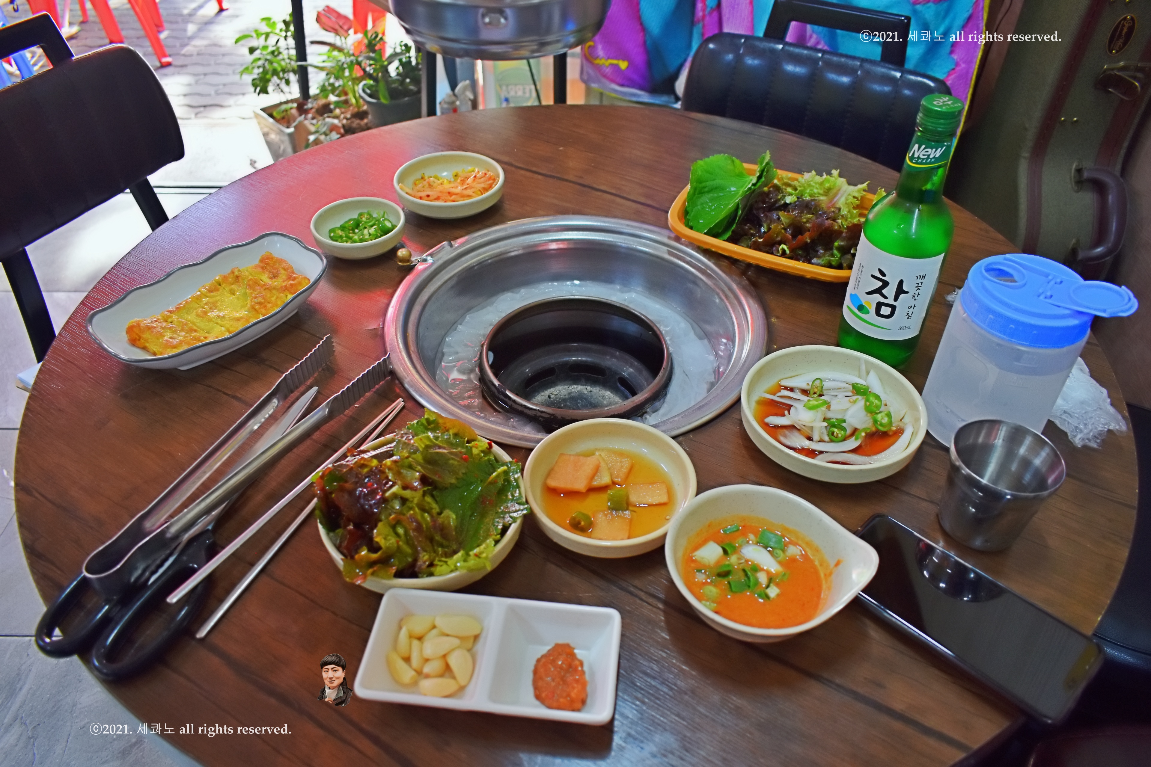 숯불 들어오기 전에 찬들이 깔려서 전체 샷 한 장 찍어보았고