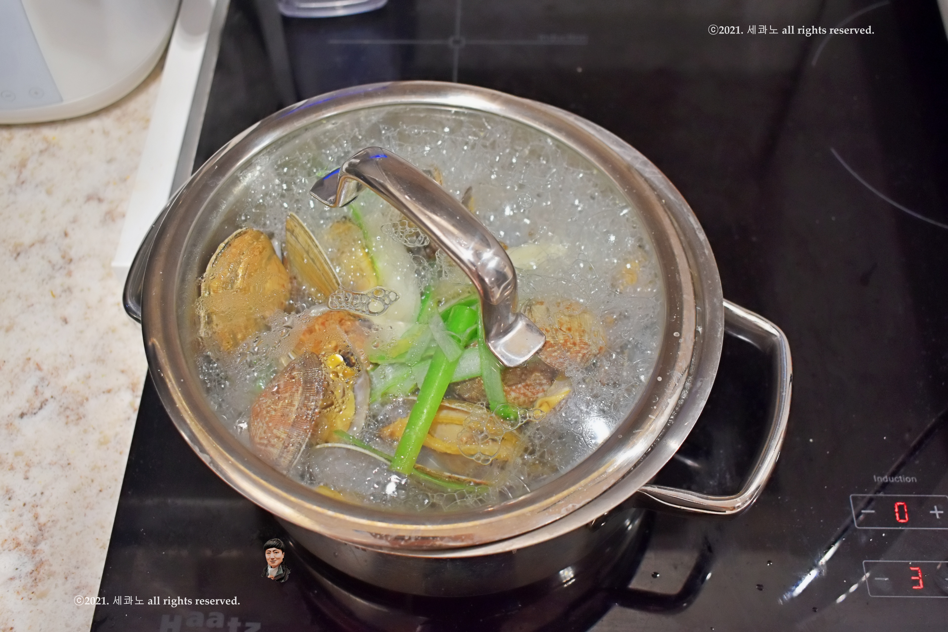 바지락, 물, 술 세 가지만 넣고 끓여도 된다.