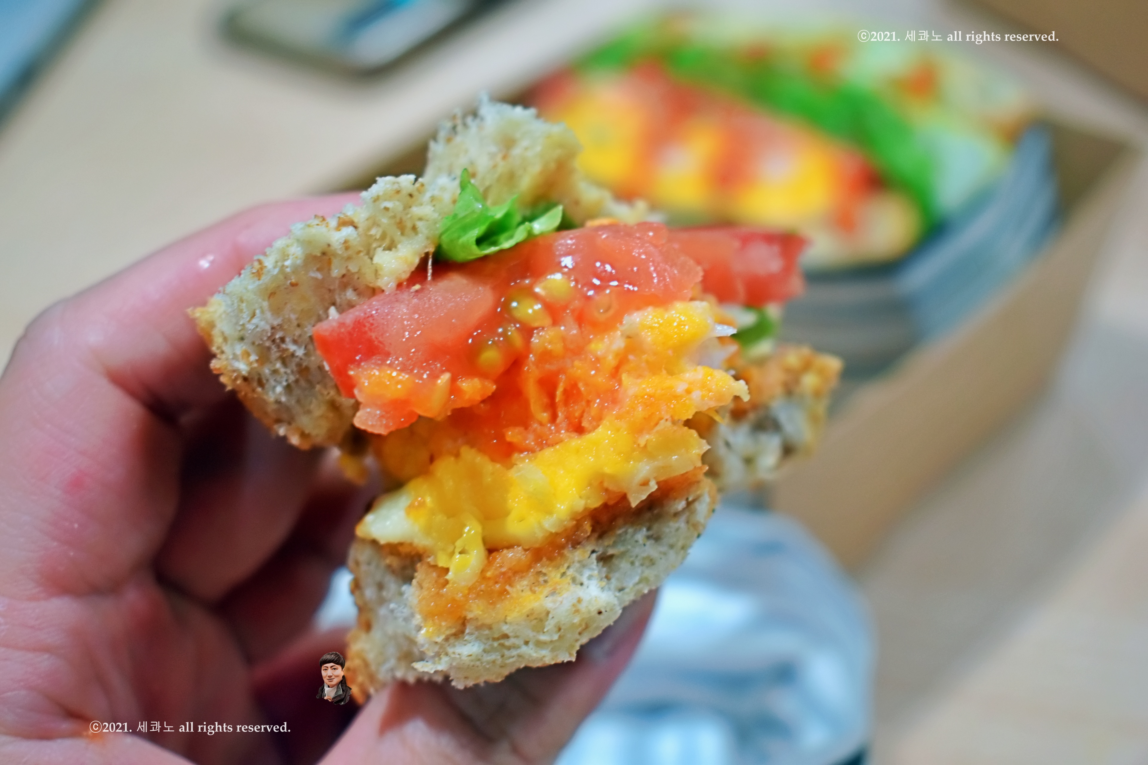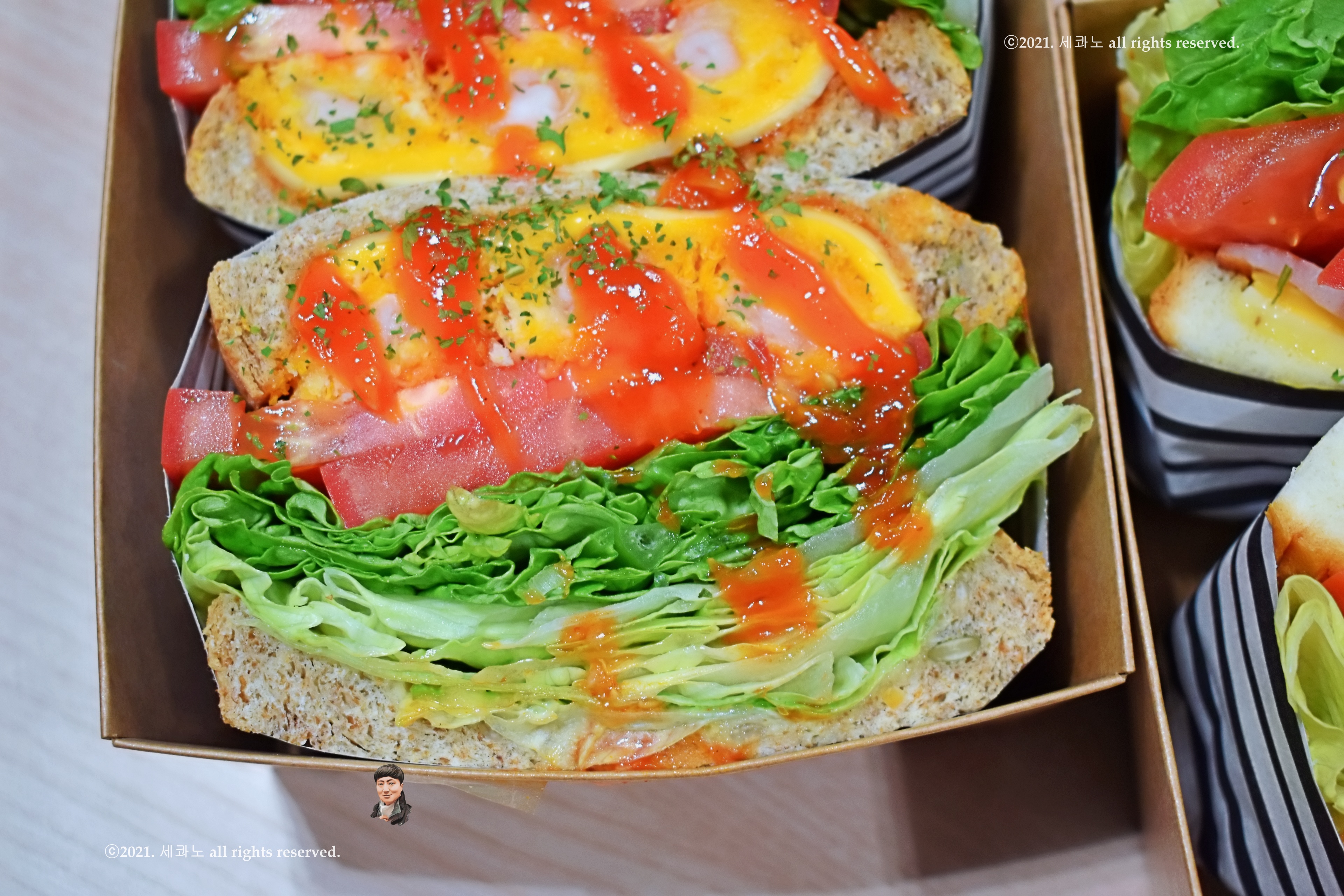 빵이 중간에 한 조각 더 들어가야 하는 게 아닌가 싶고