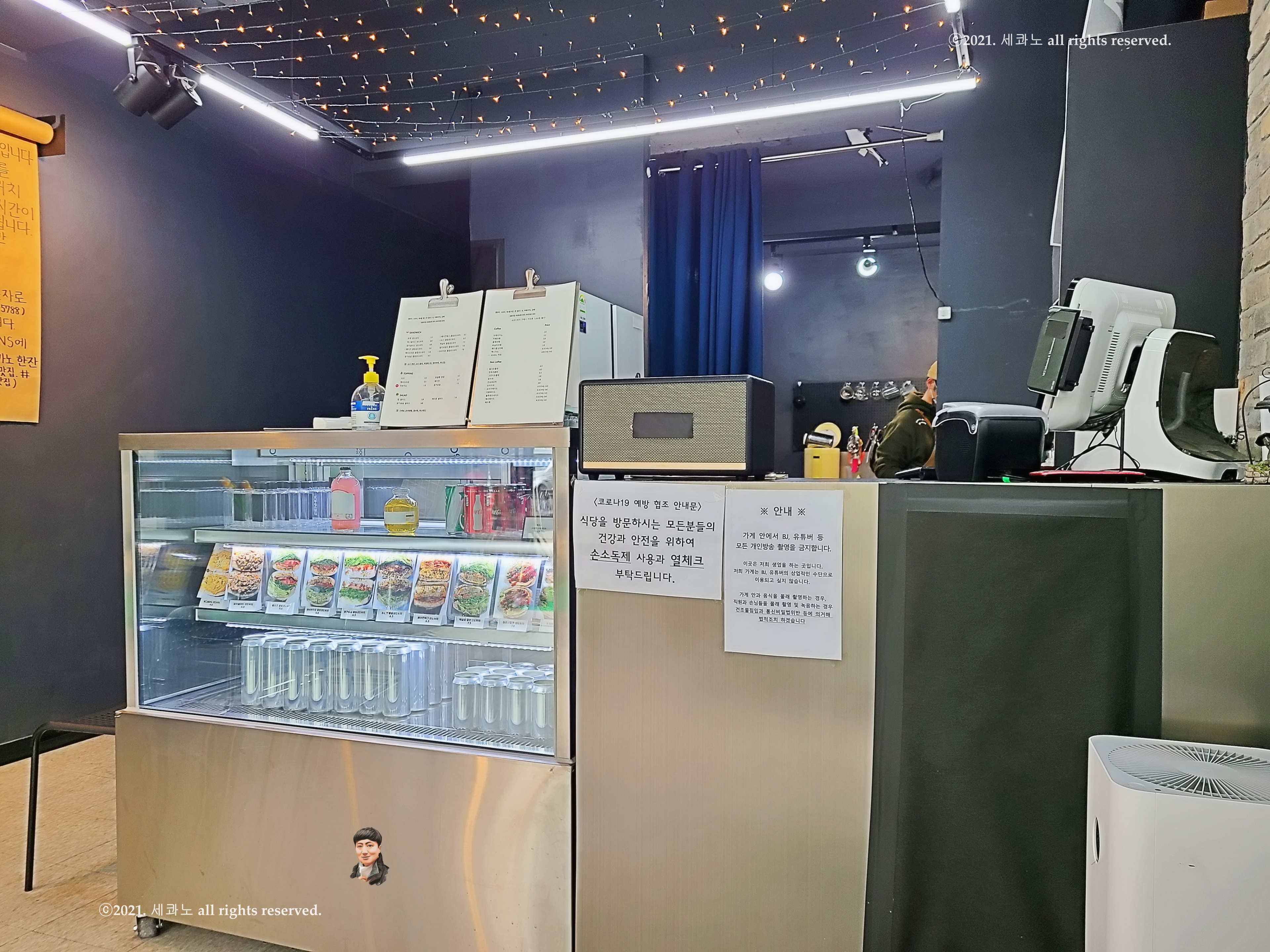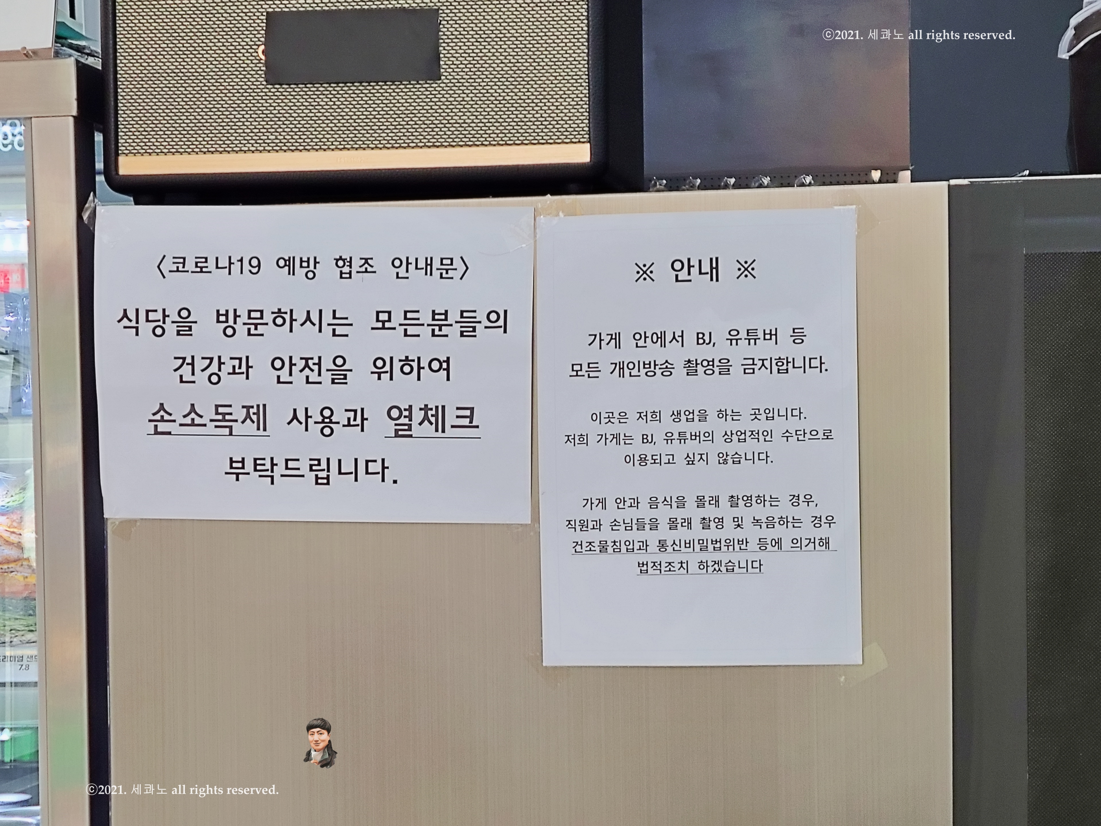 카운터 쪽에 코로나19 예방 협조 안내문과 함께