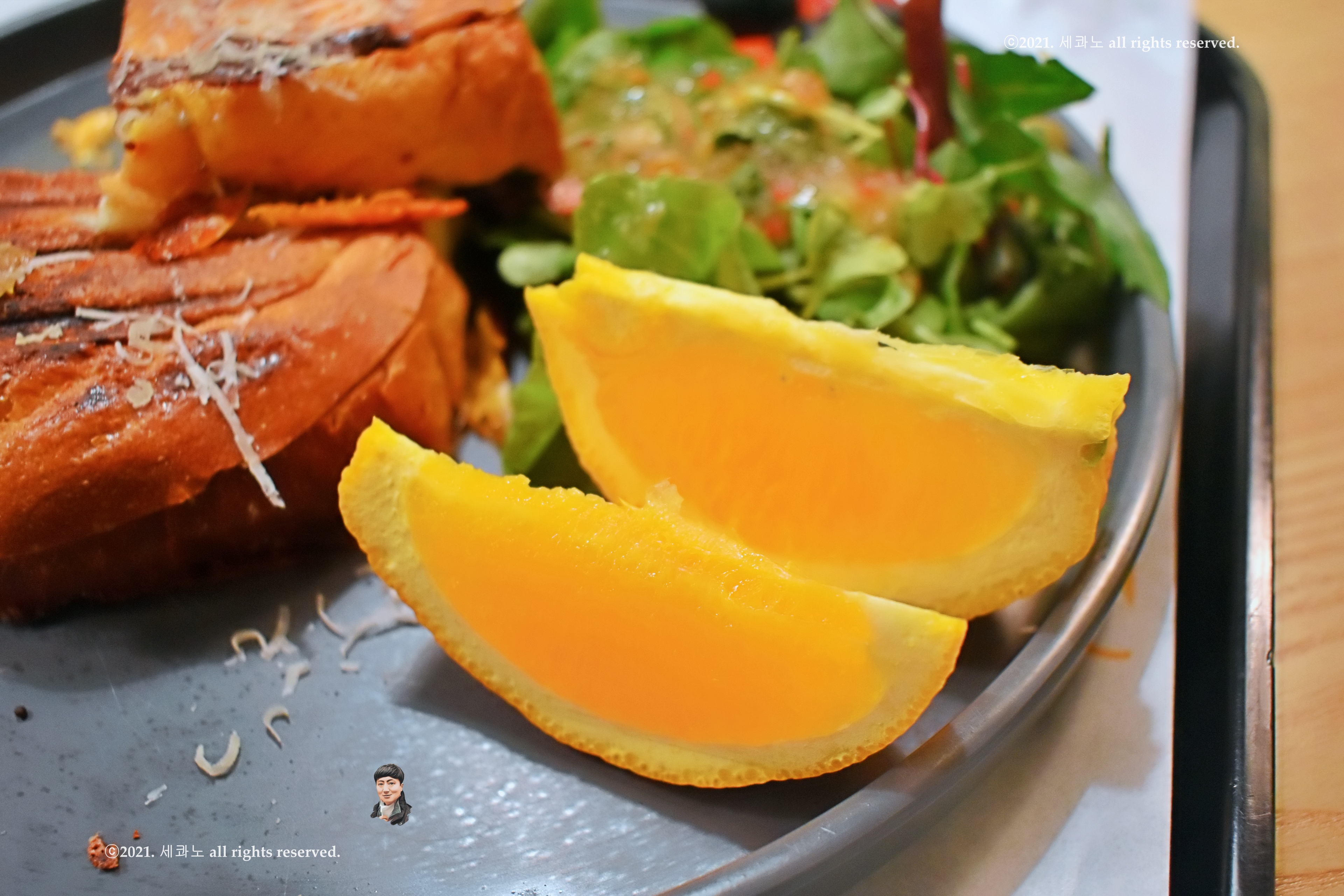 오렌지나 방울토마토 등의 야채나 과일도 같이 나왔다.
