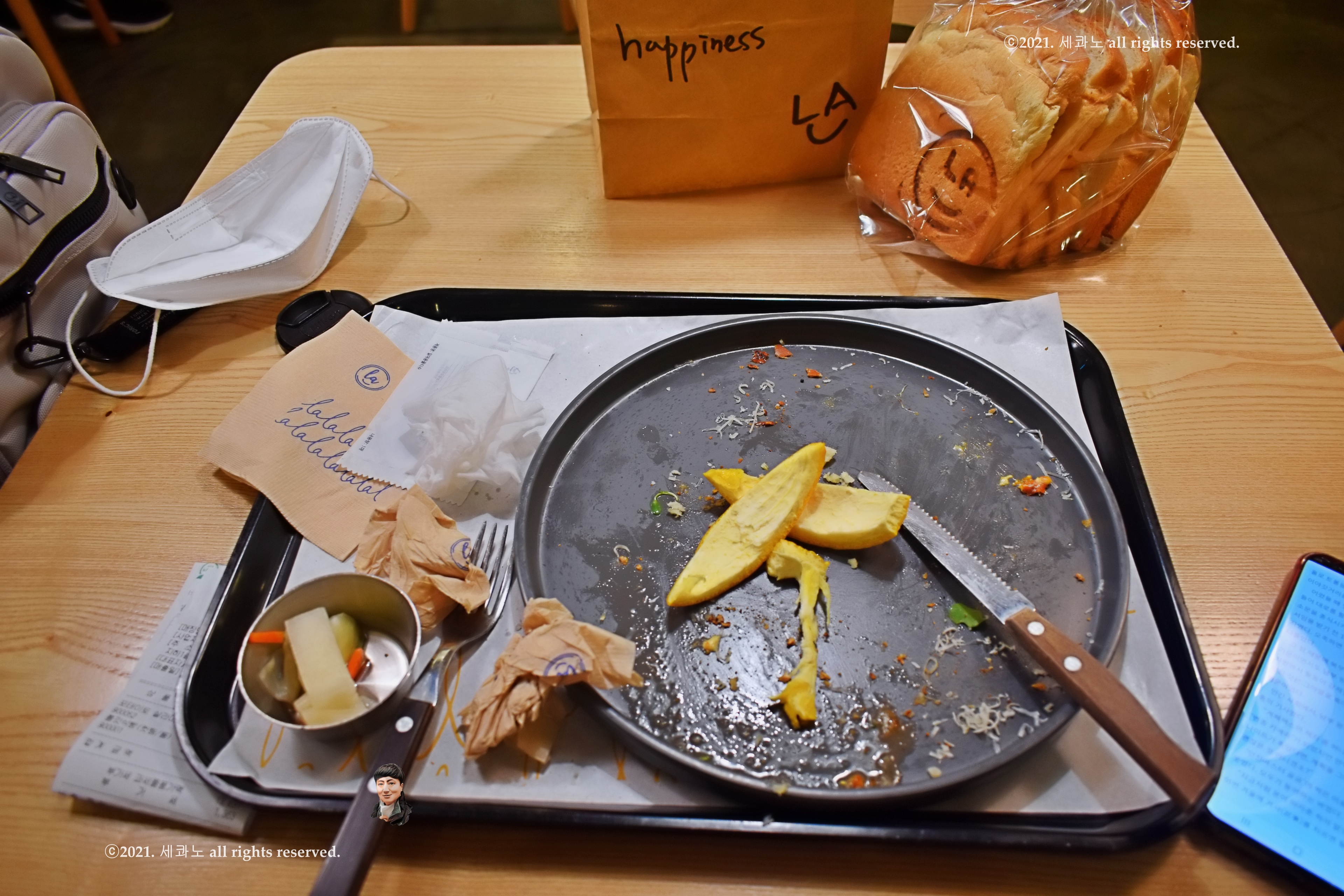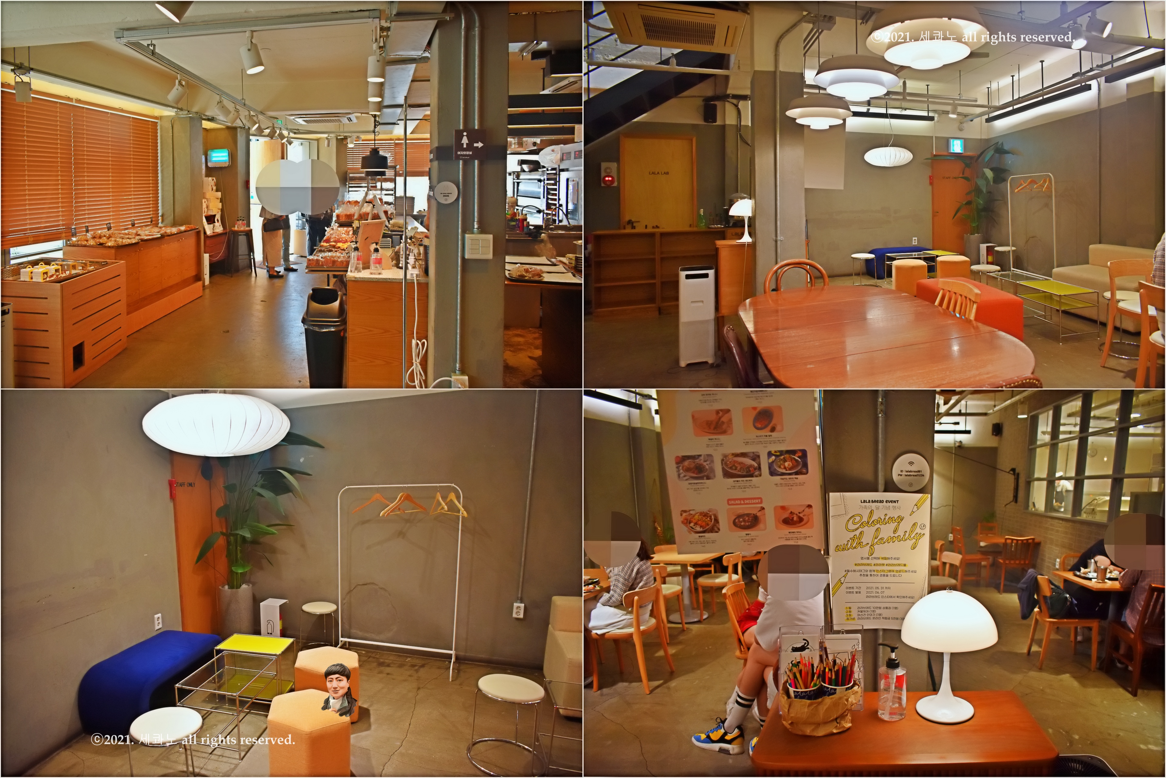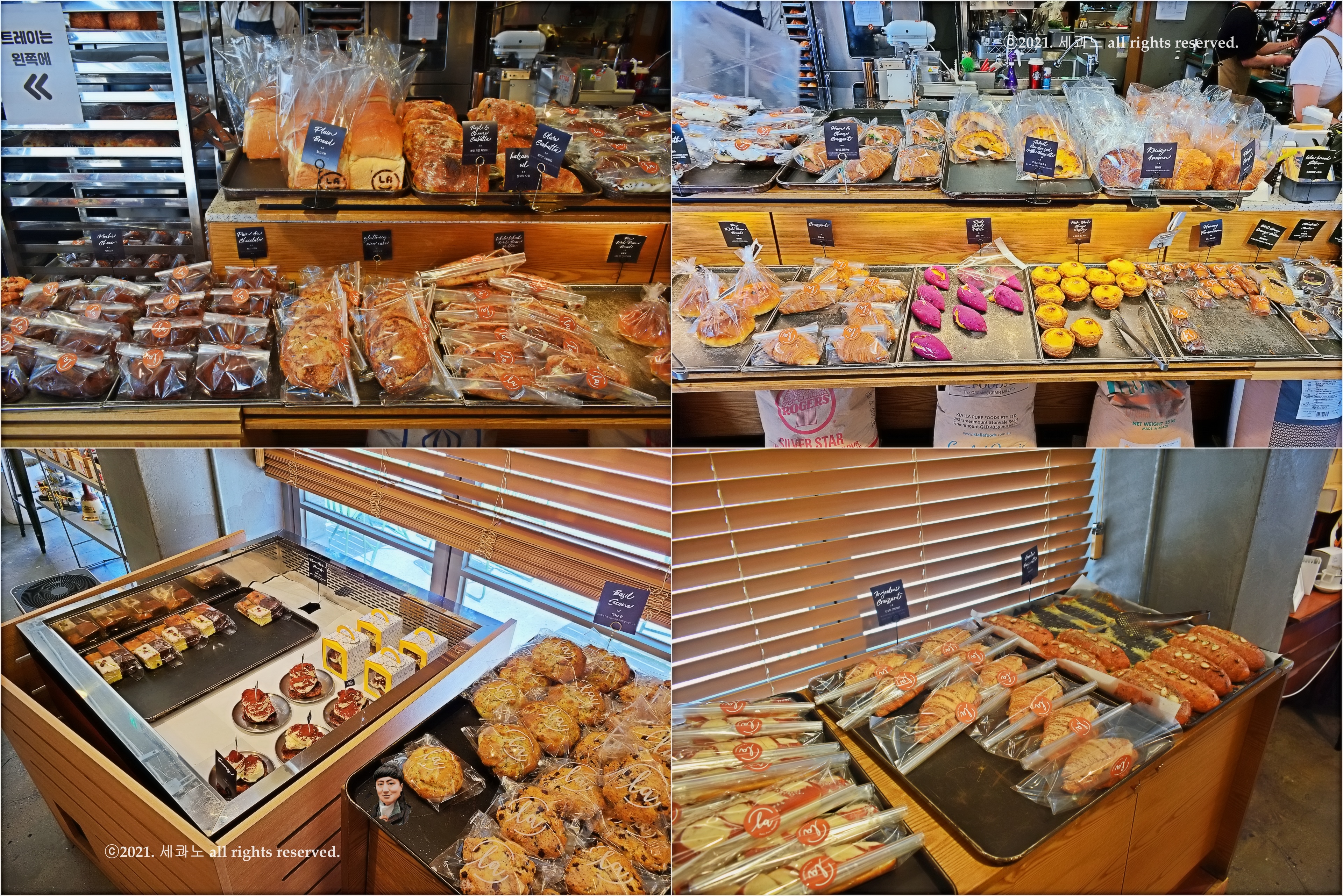 지하에 구매한 빵을 먹을 수 있는 장소가 있어서