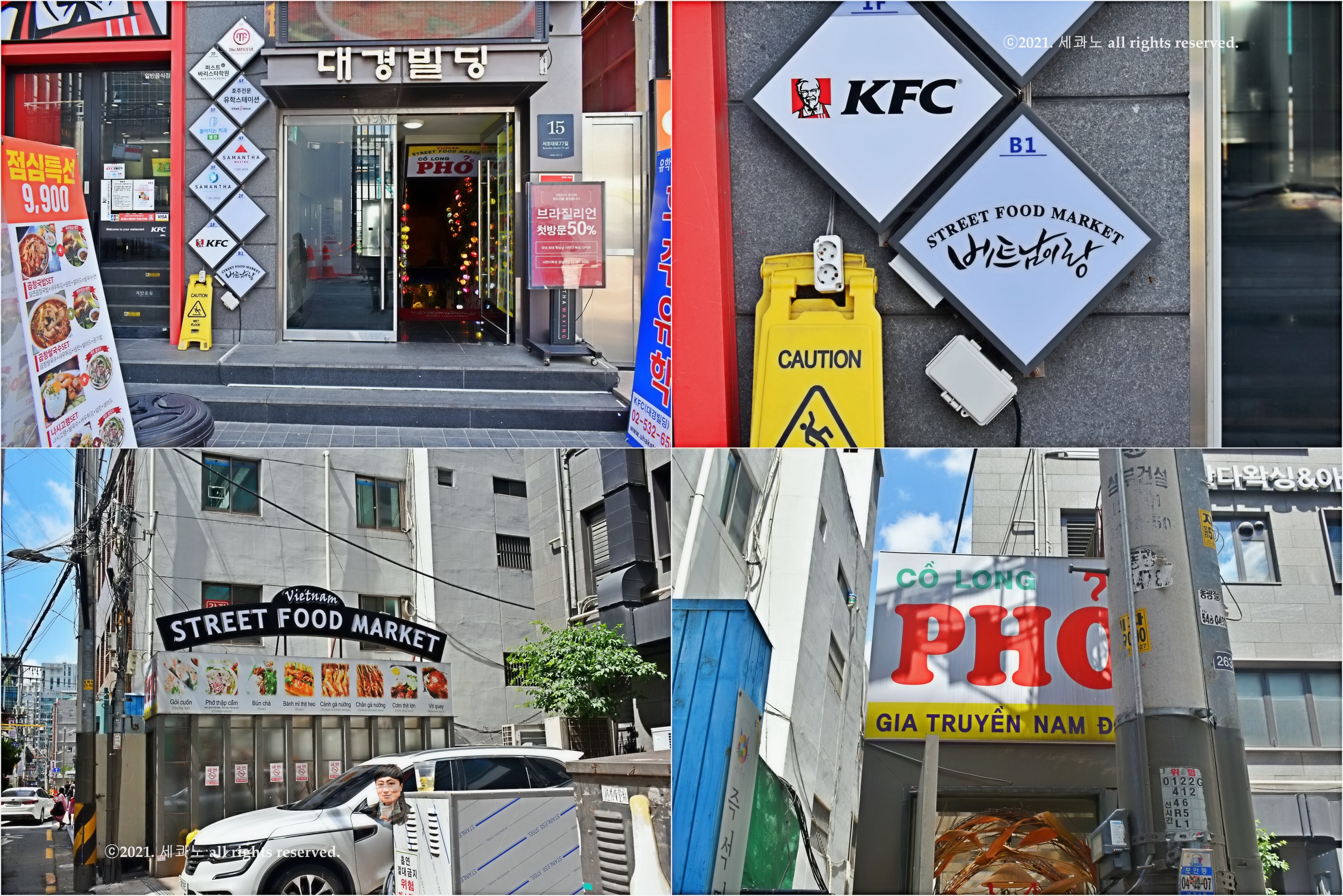 베트남 식당 베트남이랑의 정문과 후문 사진이다.