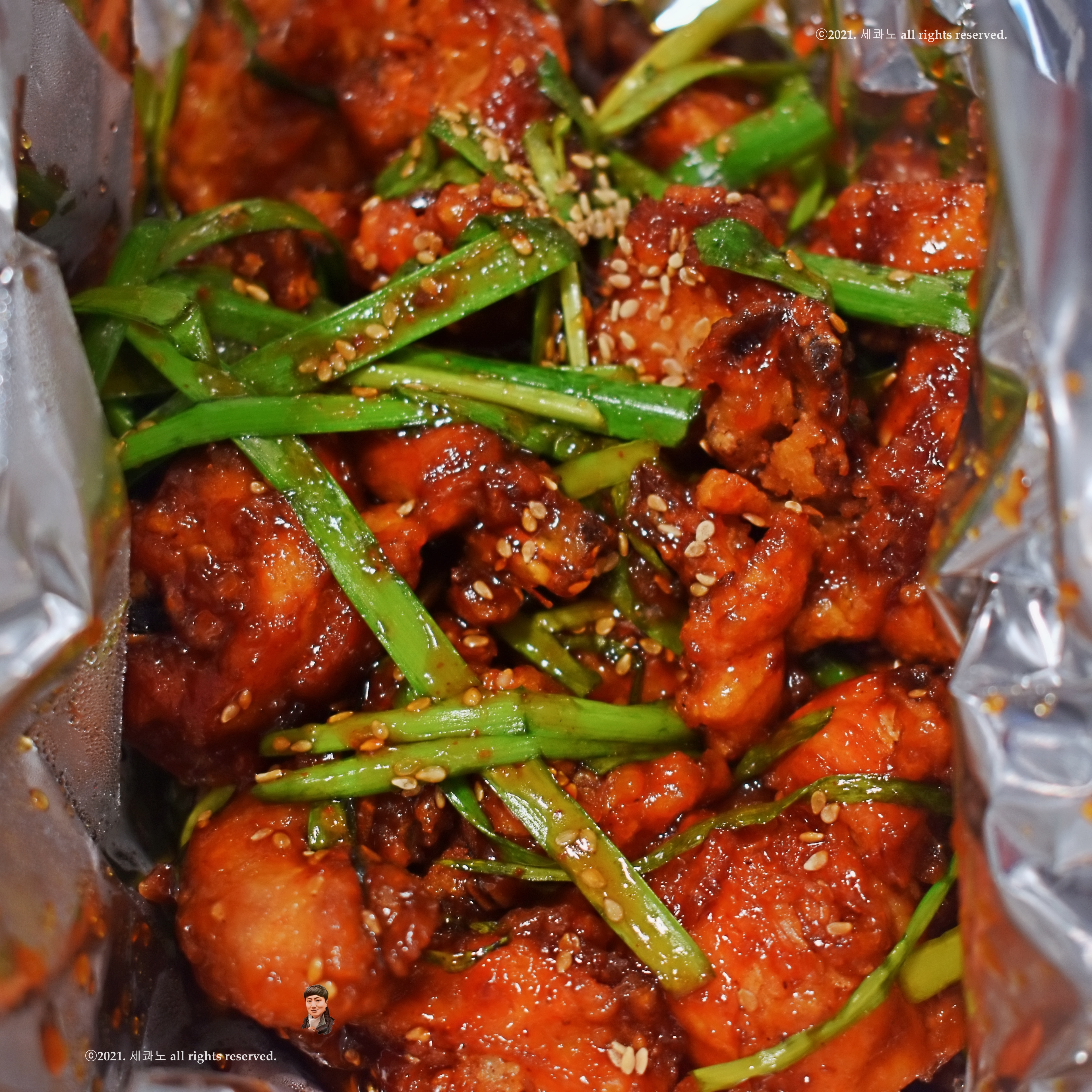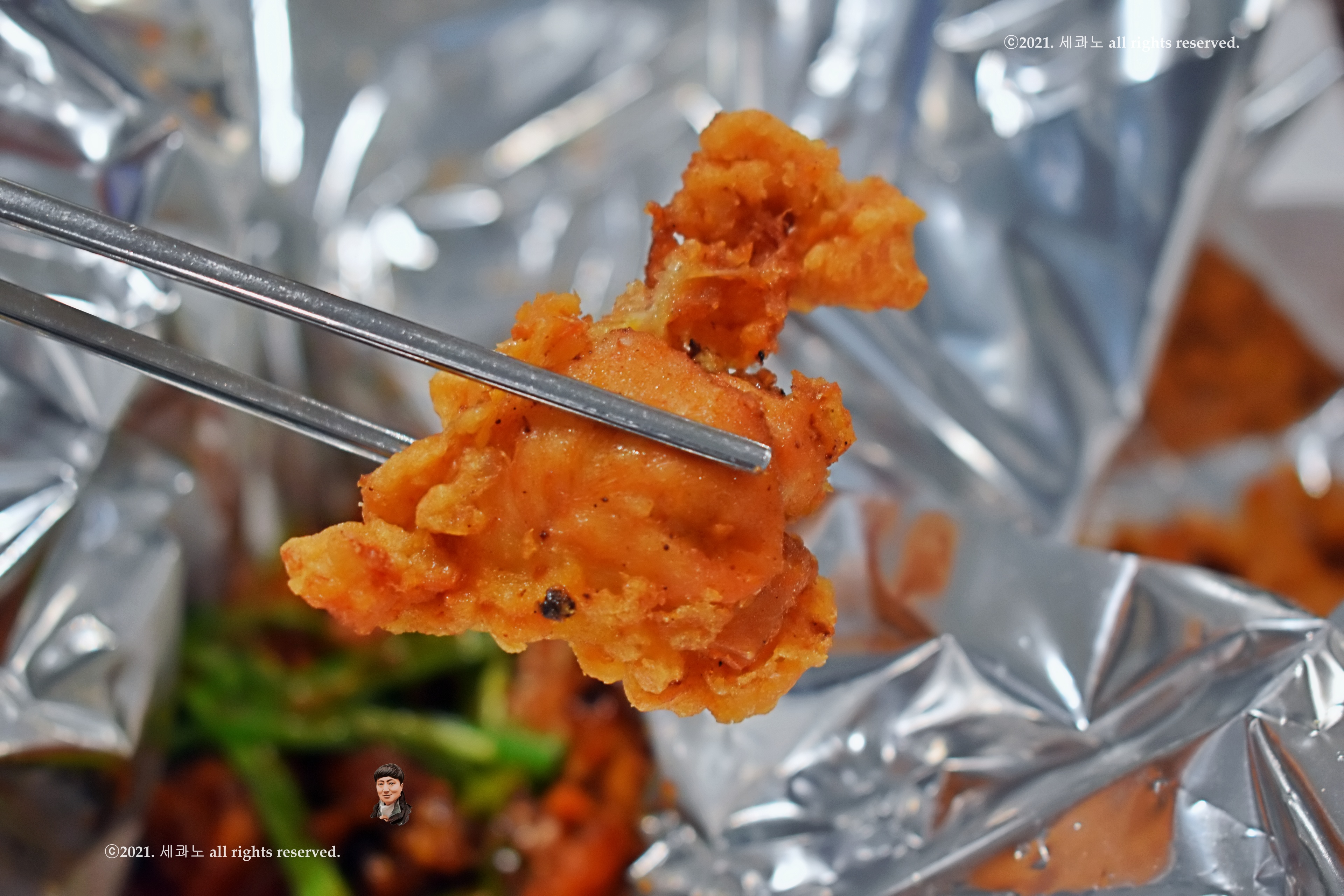 아무래도 양념을 흡수해서 바삭한 느낌은 덜하다