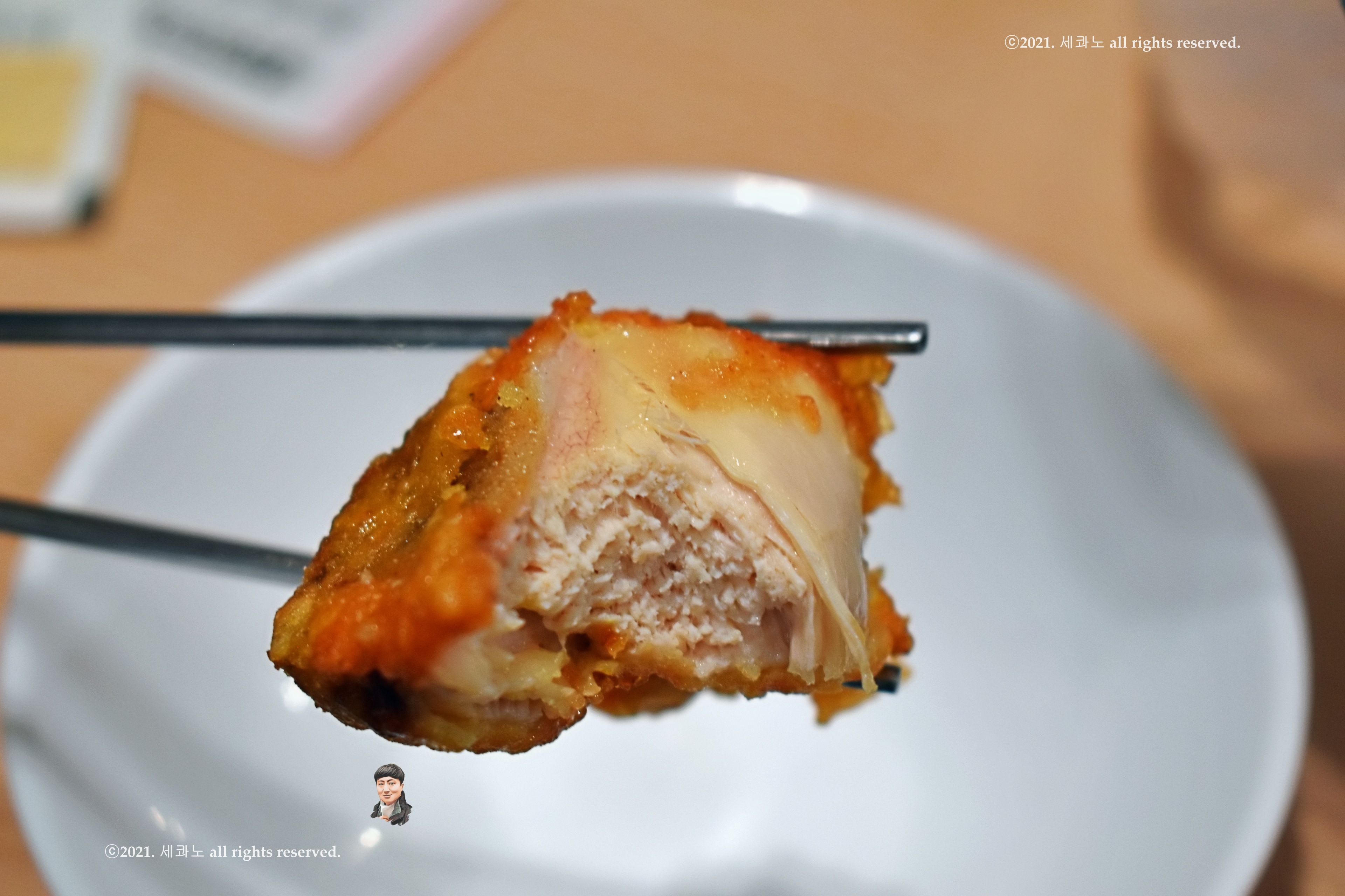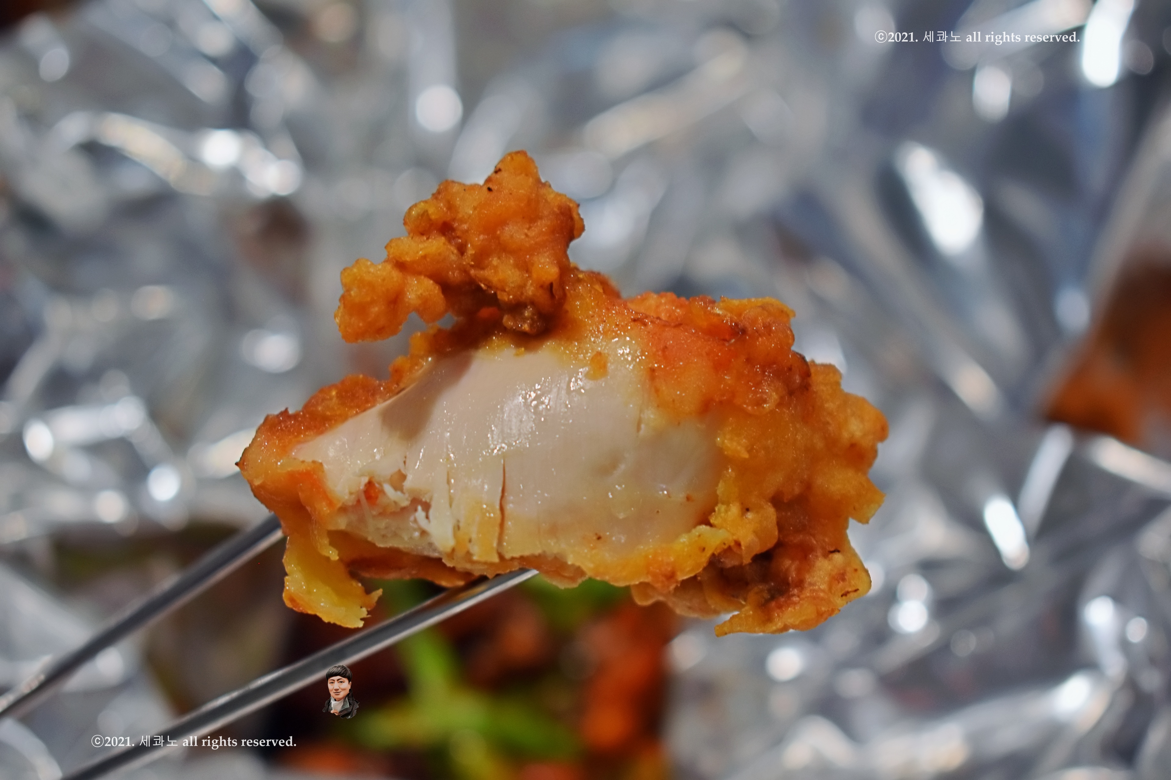 바삭바삭한 튀김과 그 속에 숨어 있는 야들야들한 닭고기는