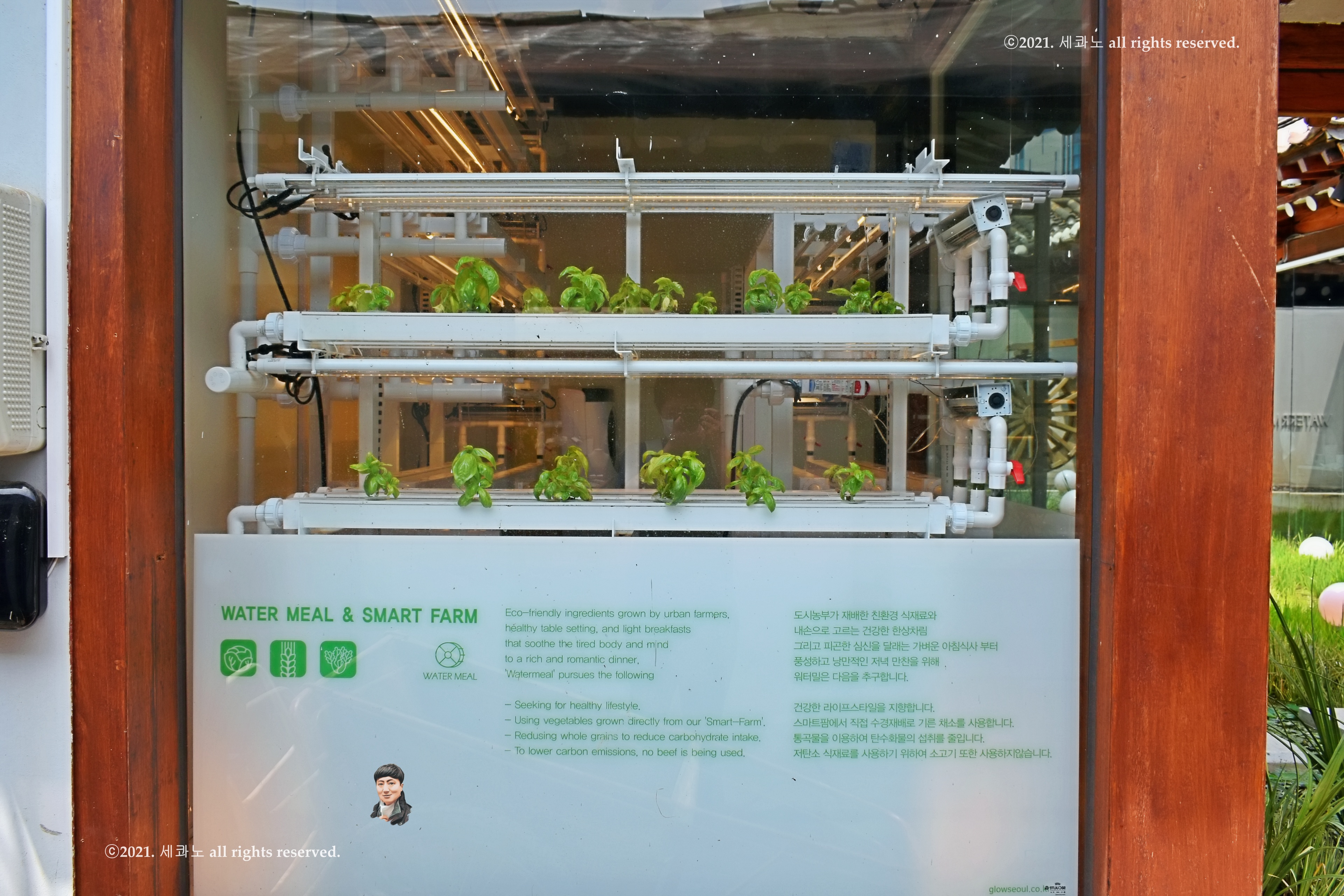 스마트팜에서 직접 수경재배로 기른 채소를 사용