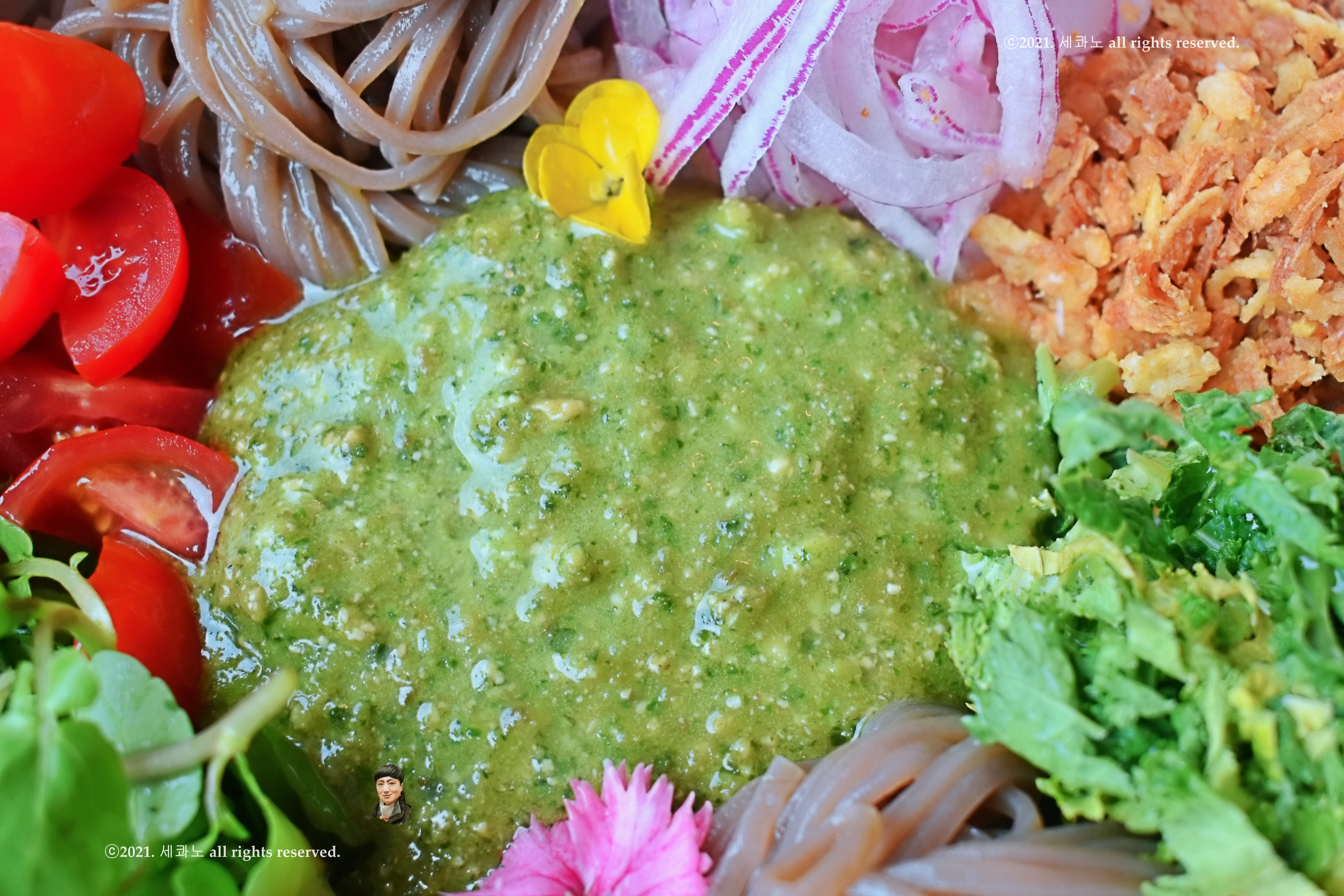 메뉴의 가장 중심이 되는 바질 아보카도 소스와