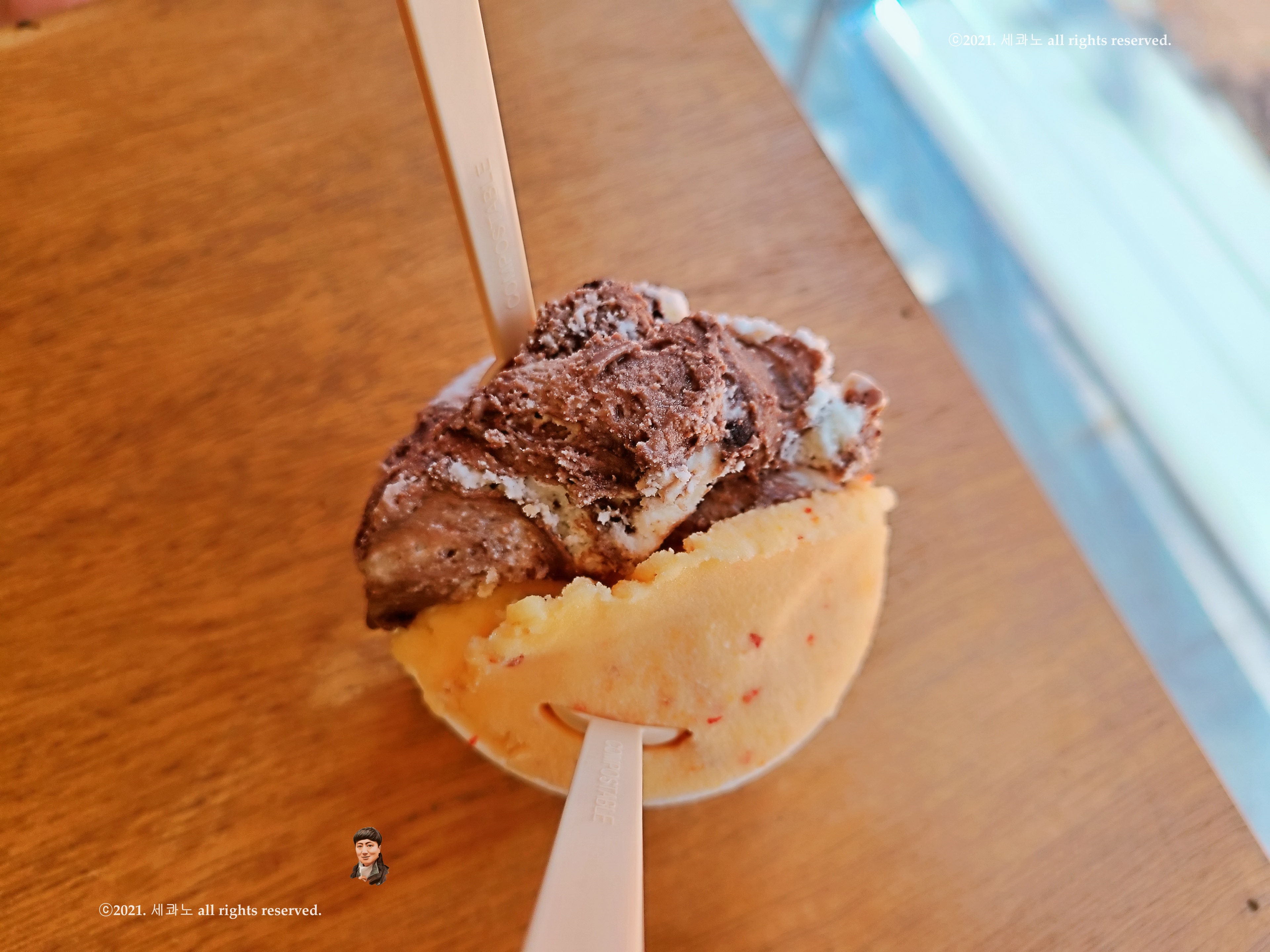 두 가지 맛 이외의 다른 젤라또를 맛보지 못했으나