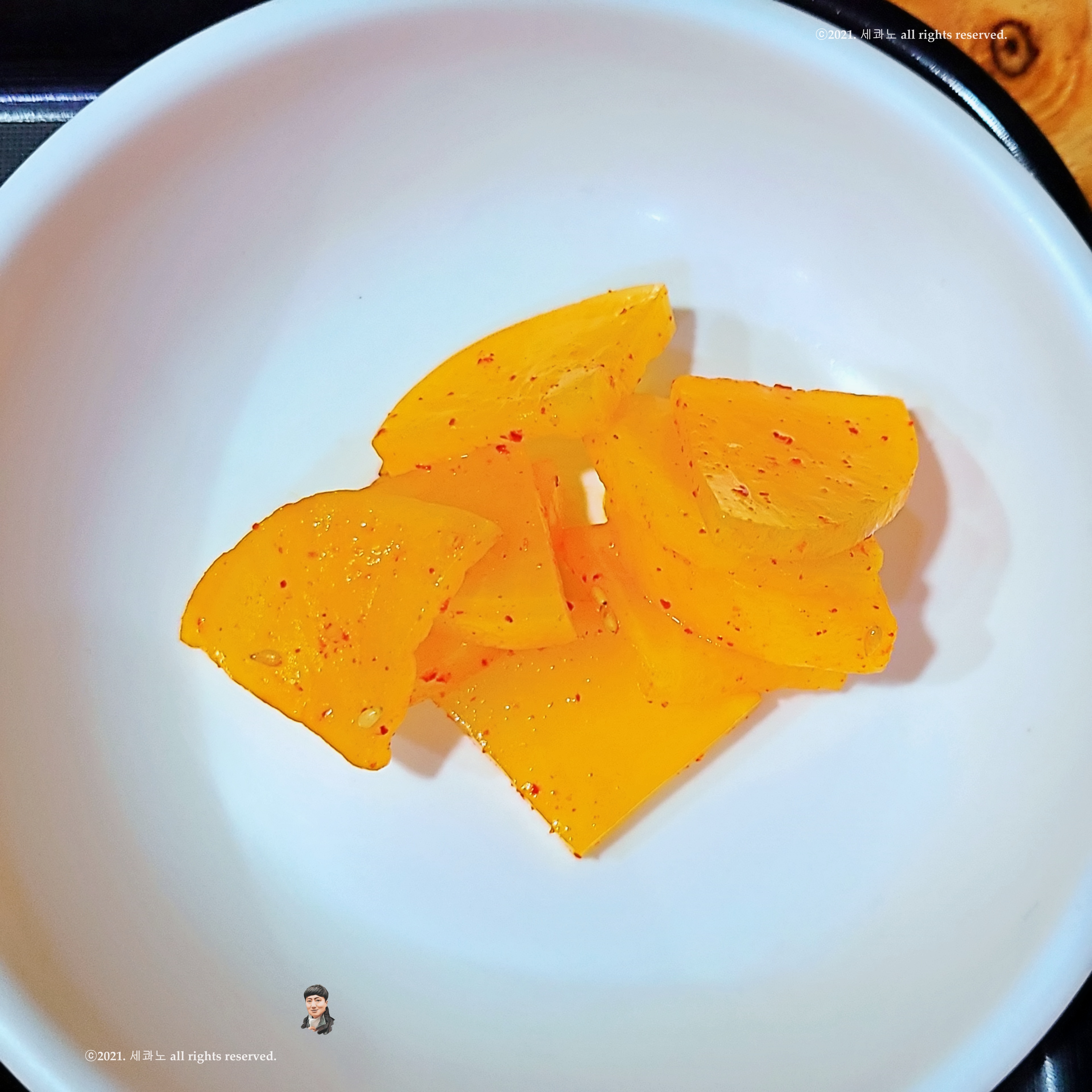 단무지 무침과 배추김치가 반찬으로 나왔고