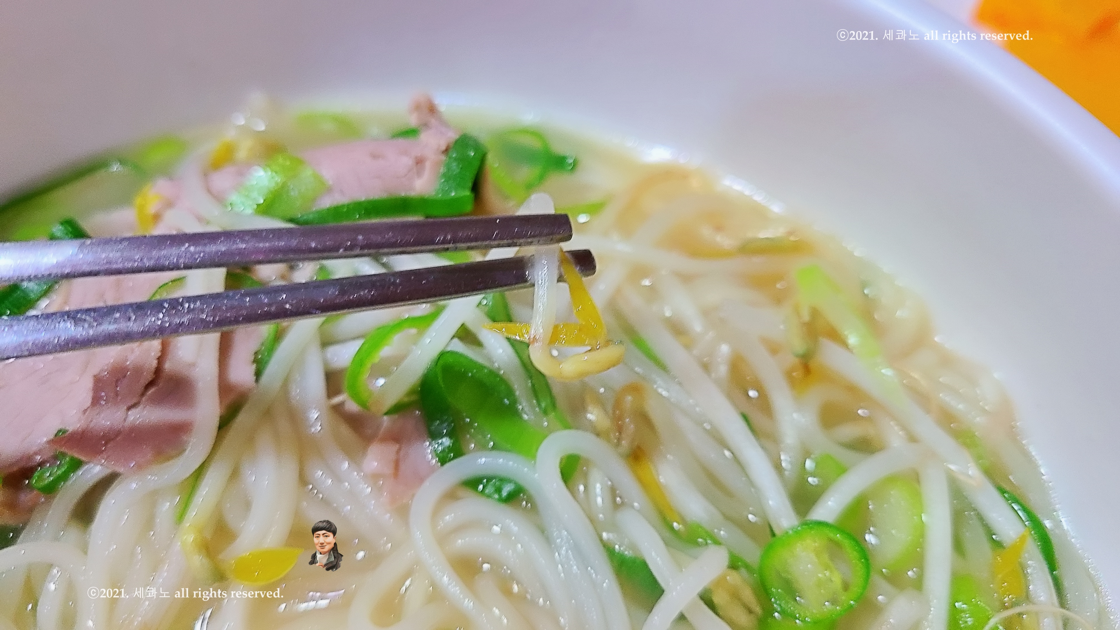 국수면과 숙주, 돼지고기와 파, 고추가 들어간