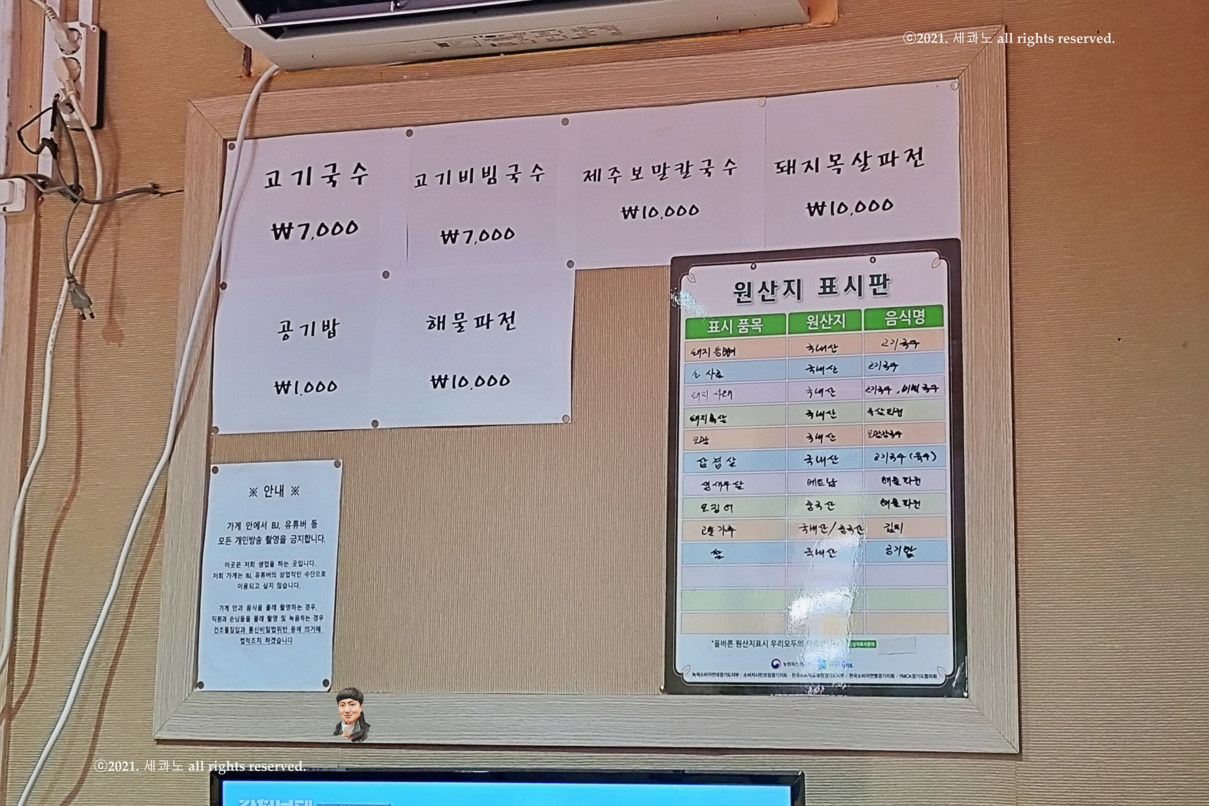 7000원 고기국수 단일 메뉴만 팔고 있다.