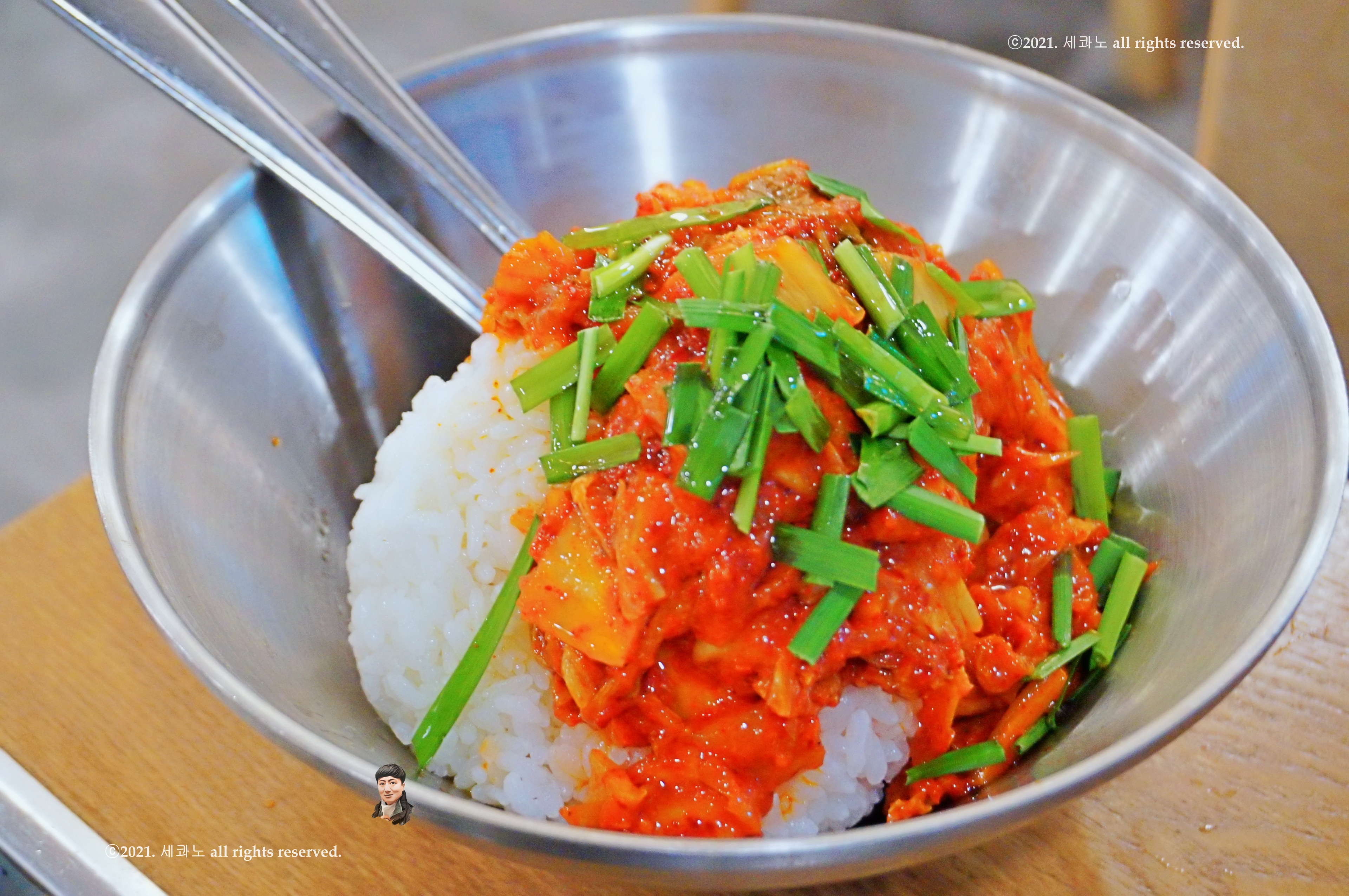 저렇게 밥 위에 김치, 부추 올라간 것과