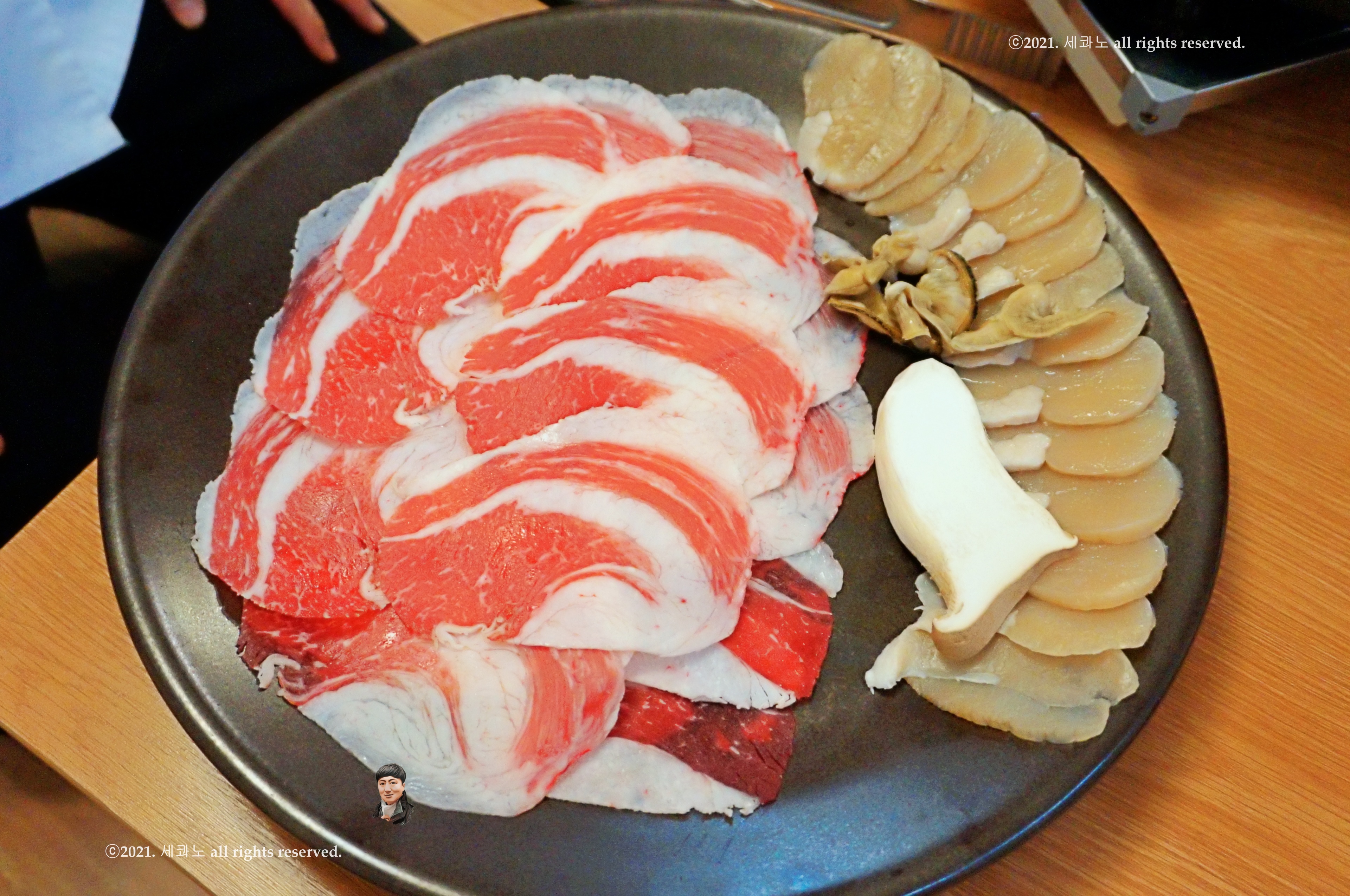 차돌박이와 버섯, 관자, 그리고 키조개 내장까지 함께 나오고