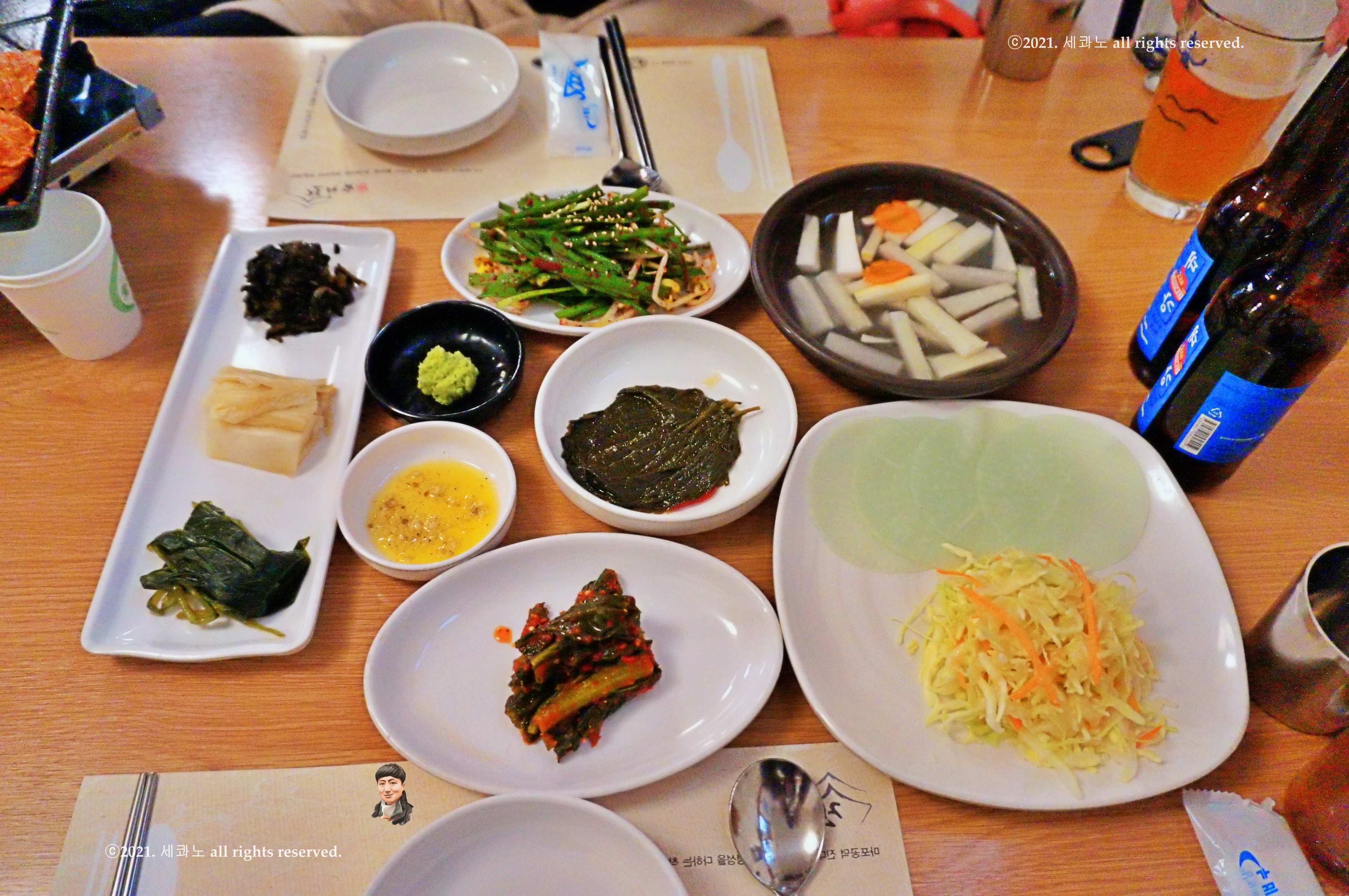 이렇게 7가지?? 8가지 반찬이라는 듯싶은데 나머지 하나가 ㅎㅎ