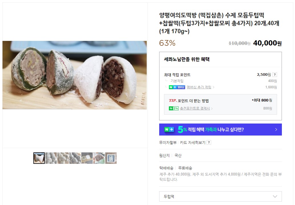 그런데... '왕찹쌀떡, 찹쌀모찌'에 상품 세부내용에