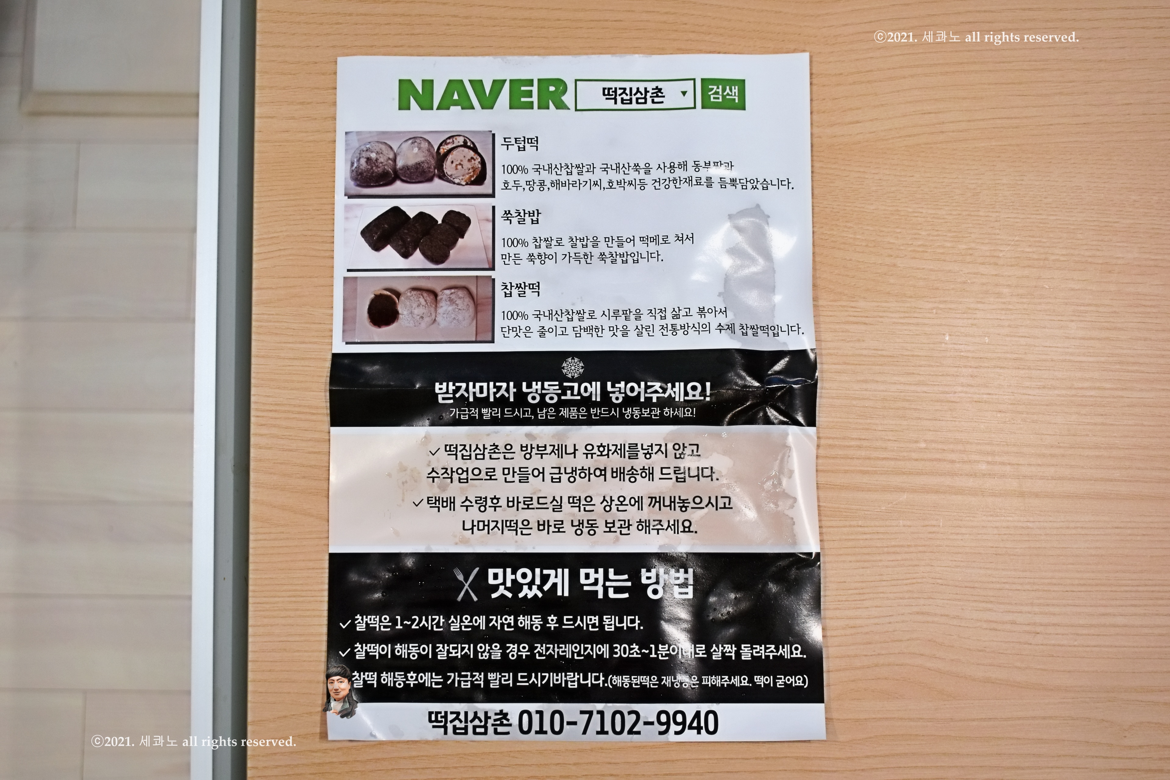 냉동된 떡을 받자마자 냉동고에 넣어 달라 되어 있고