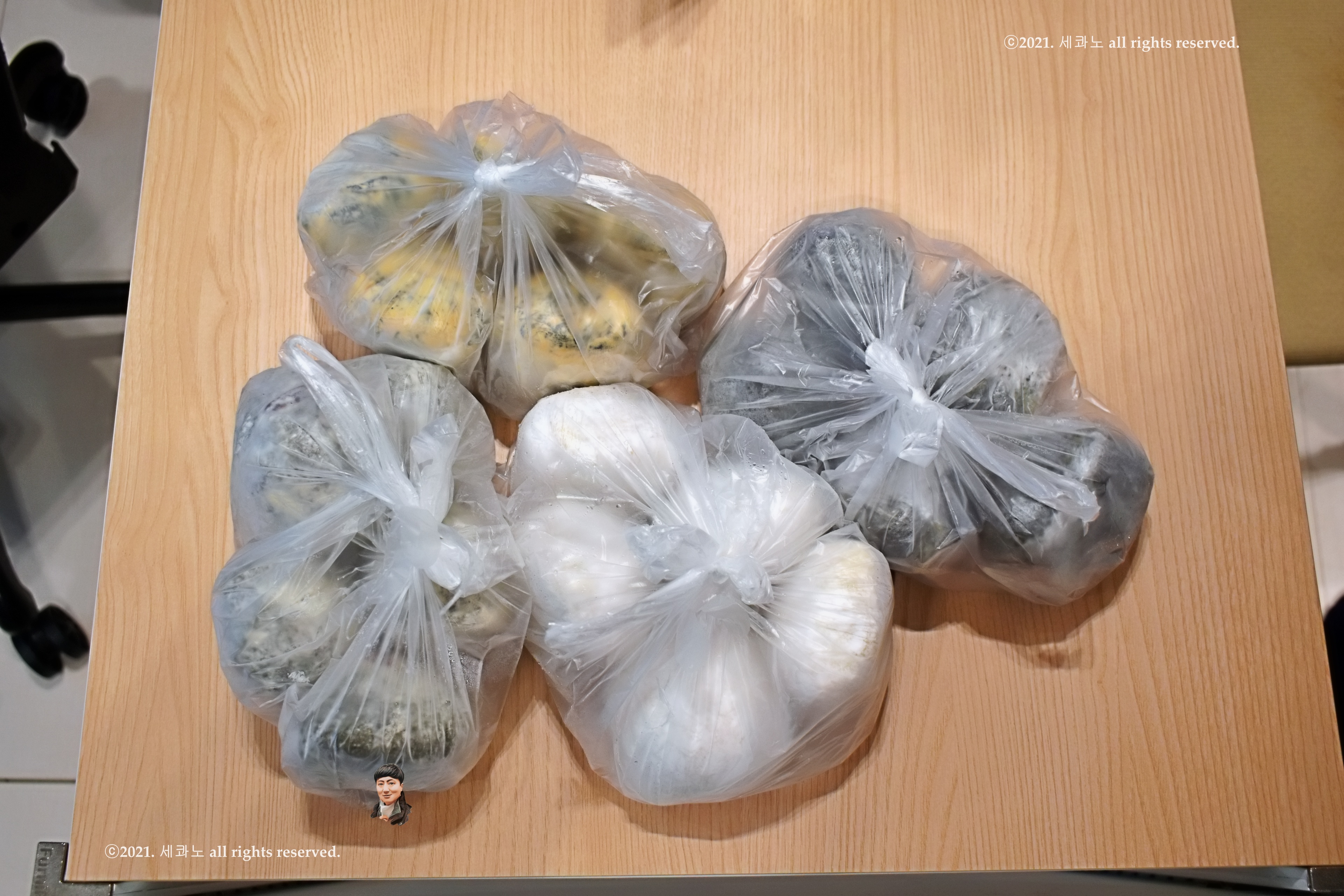 종류별로 하나씩만 따로 꺼내어 해동하고