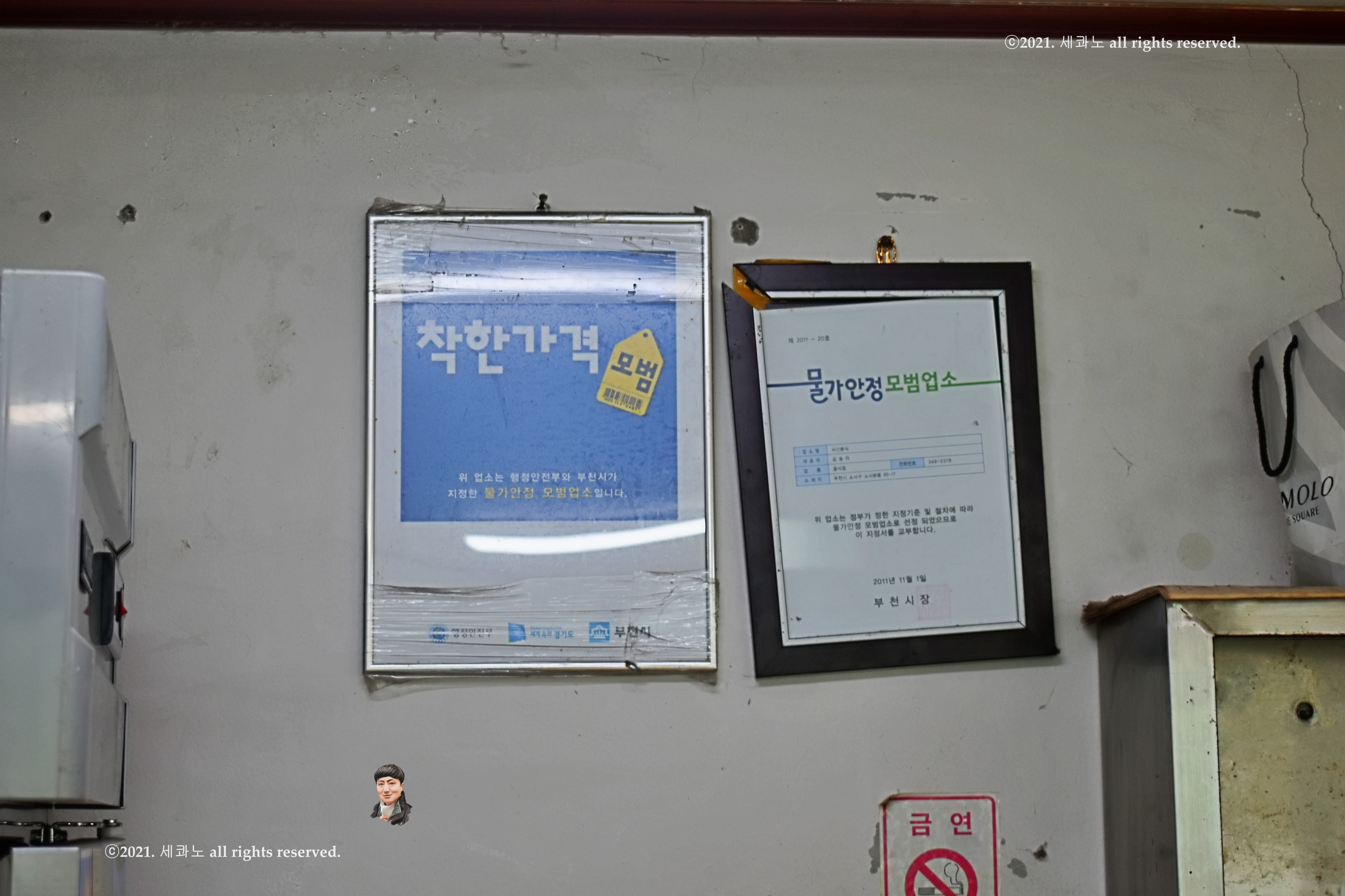 한쪽에 착한 가격 모범 업소 액자가 붙어 있었다.