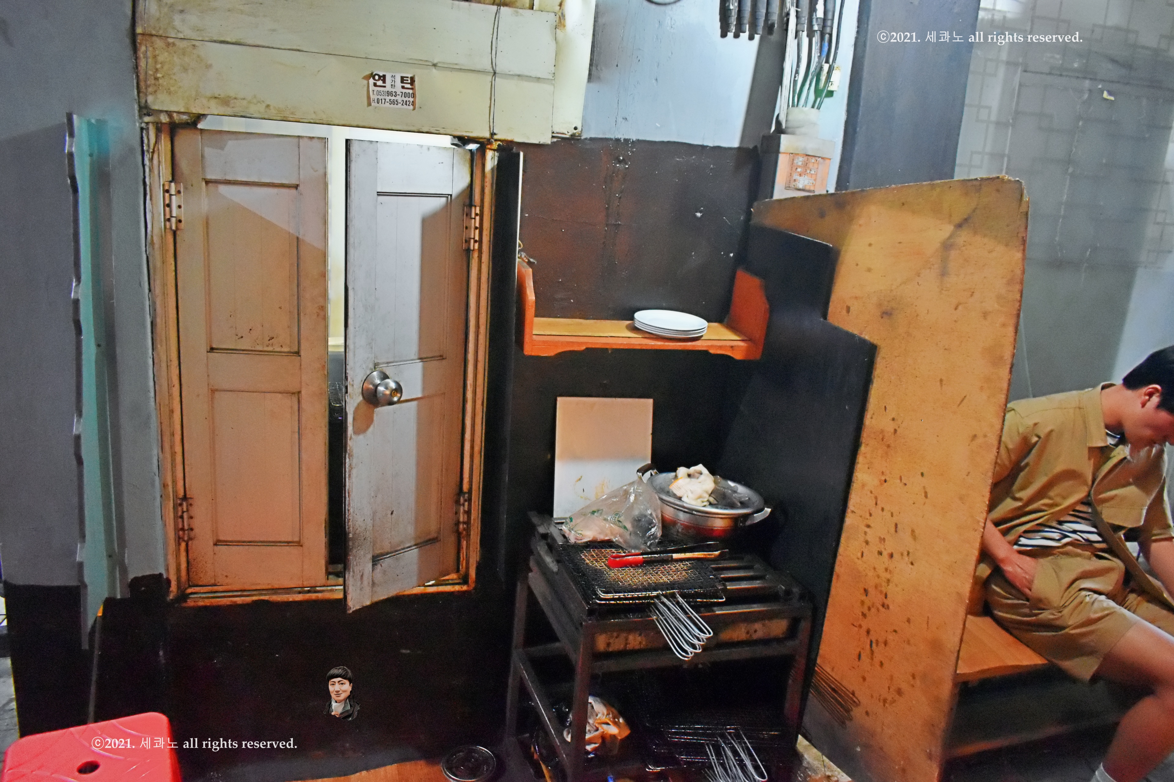 그 입구 옆쪽으로는 연탄불에 오드레기를 비롯