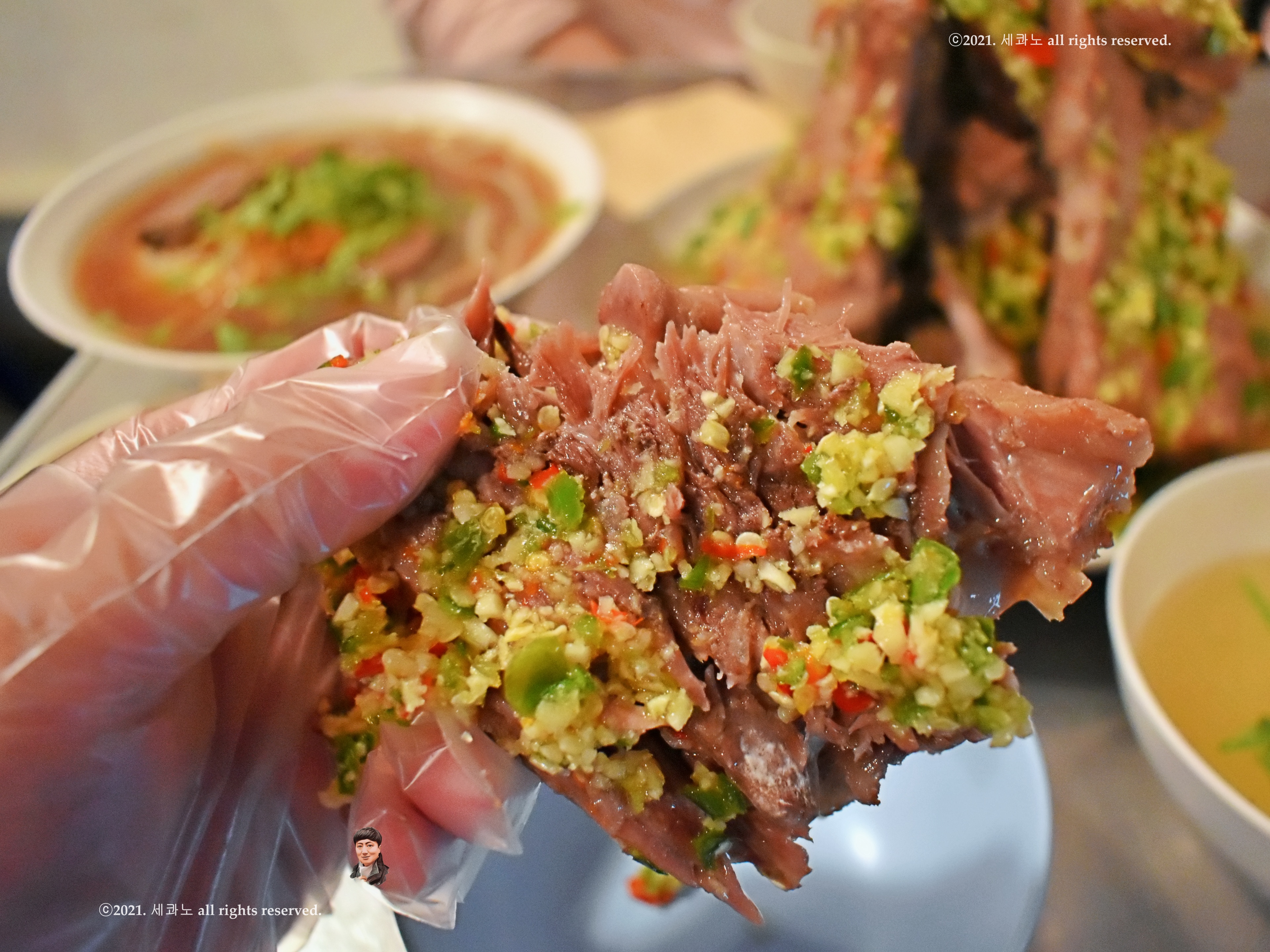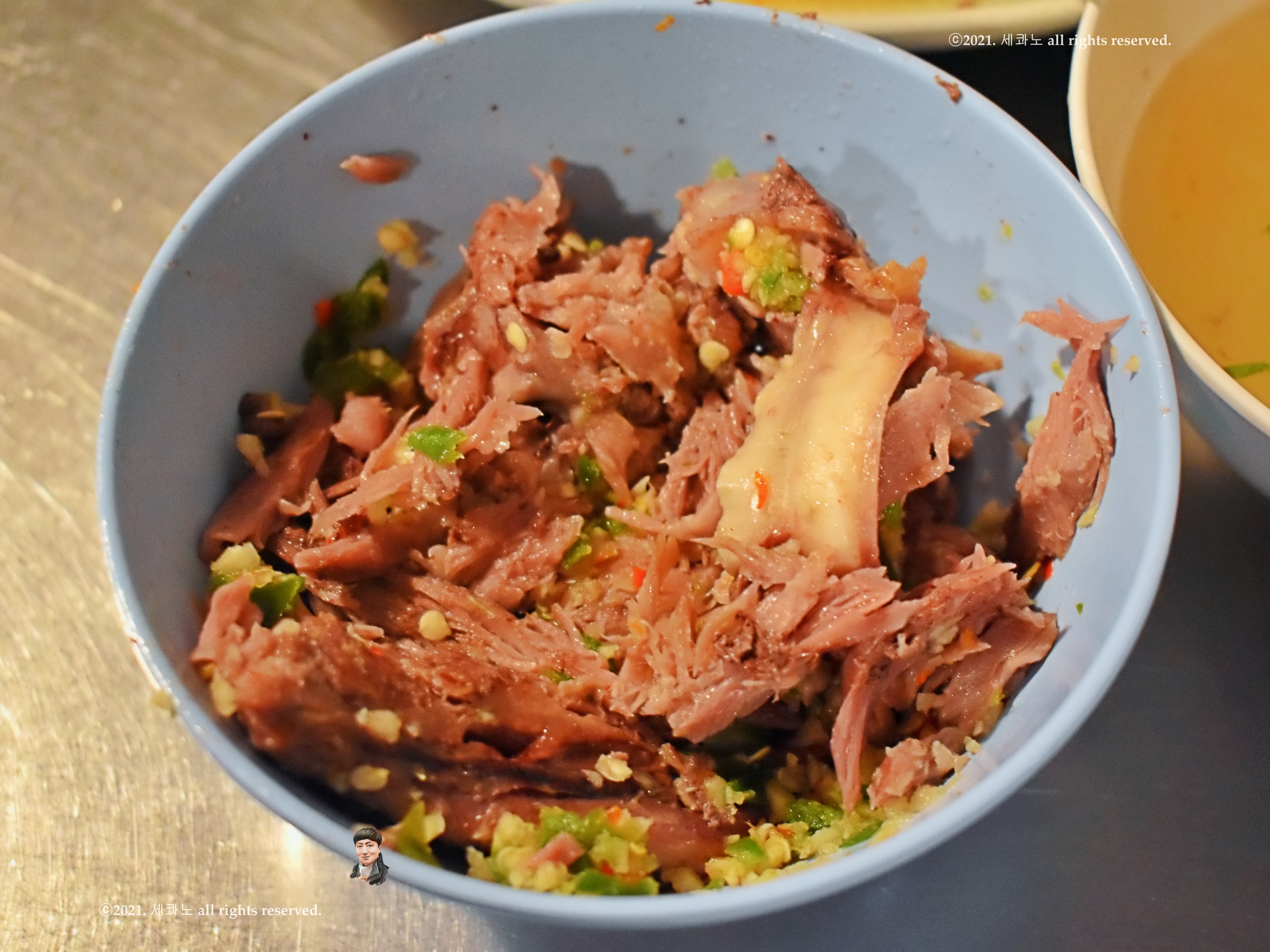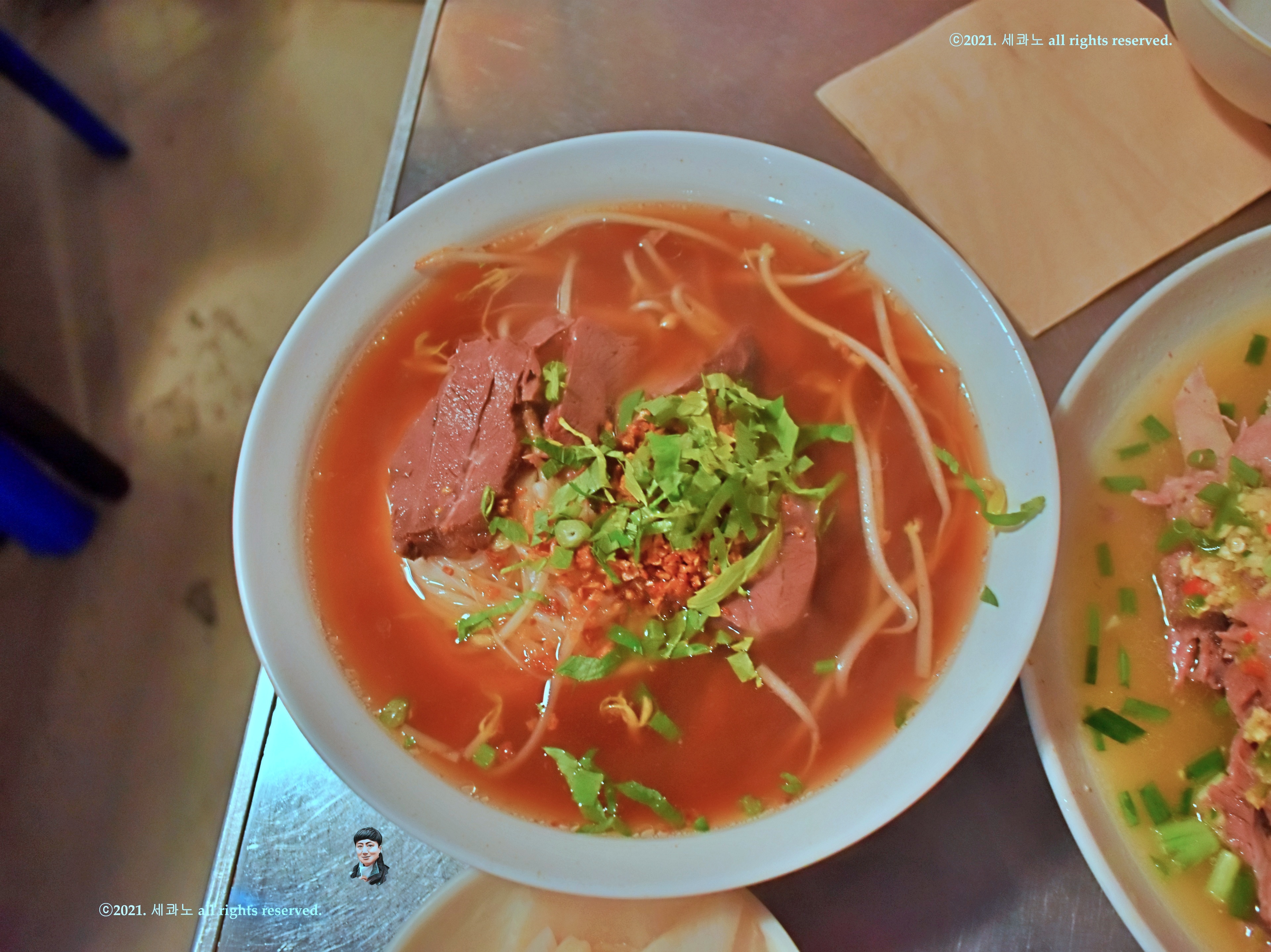 (사실 앞 접시에 옮겨둔 렝쎕 돼지고기에 쌀국수 면을 덜어서 먹어보았으니